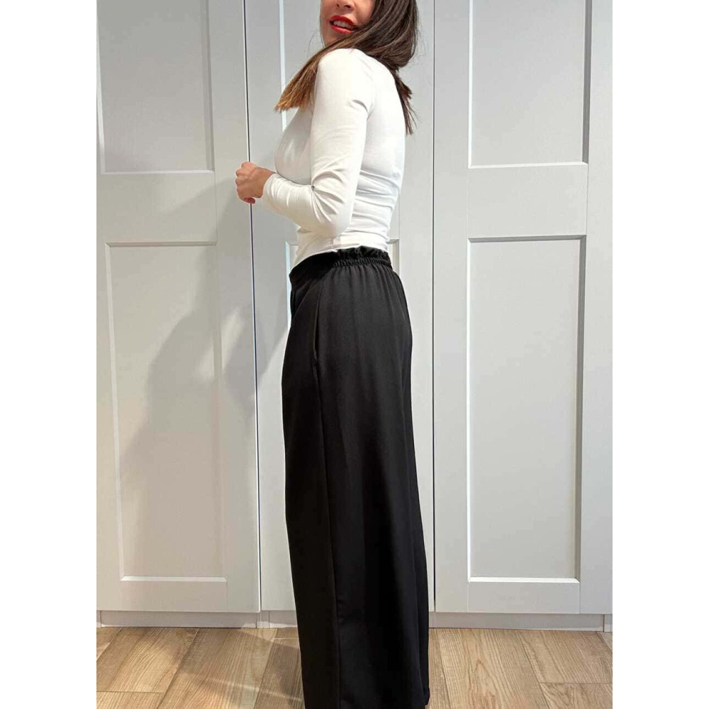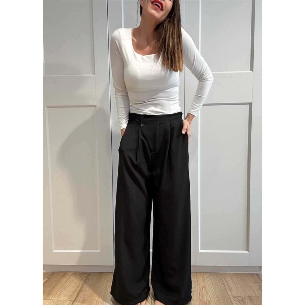 Pantalón Wide Leg Efecto Cruzado NOVYANT Negro
