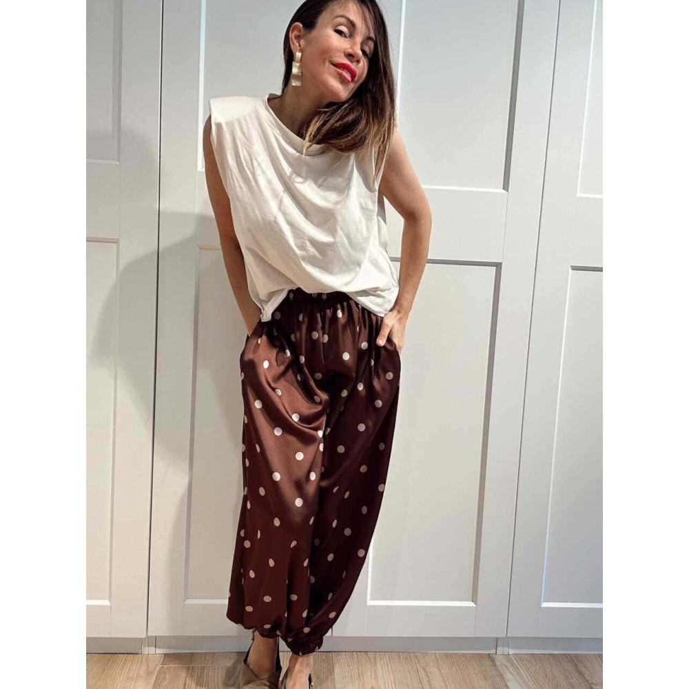 Pantalón Satinado Lunares CAMYRA Marrón