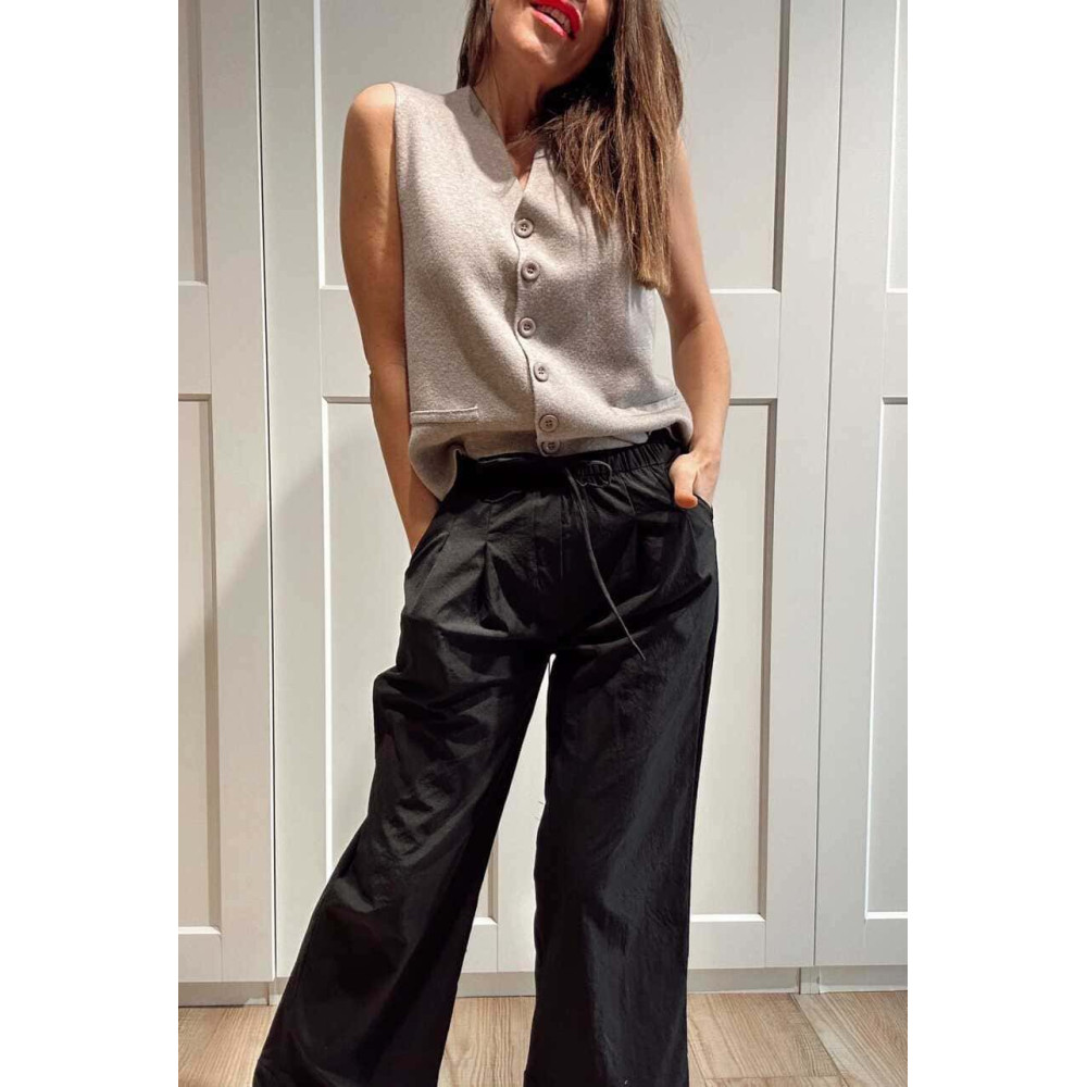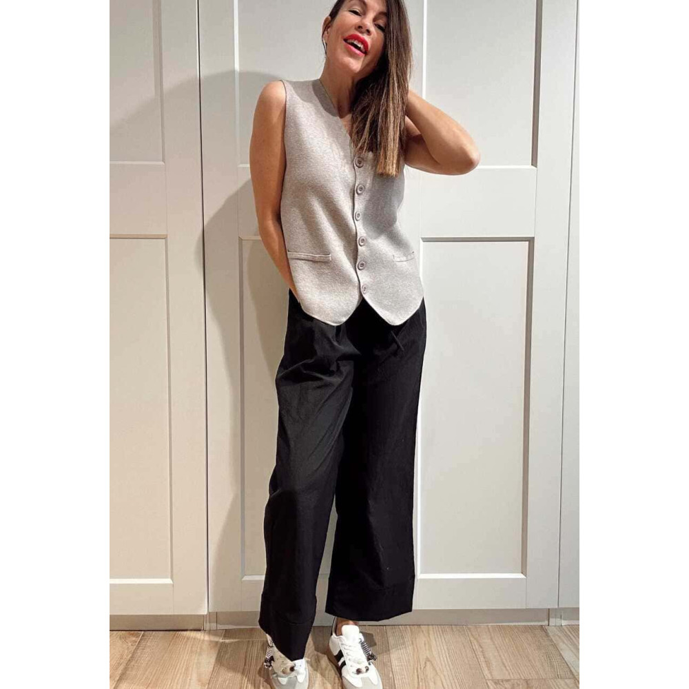 - Chaleco básico de agradable punto soft con escote pico y manga sisa.