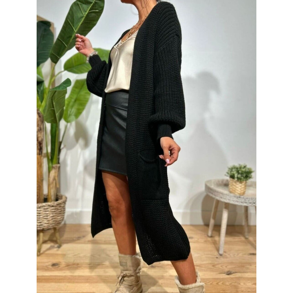 - Chaqueta extra-long de punto con manga larga abullonada.