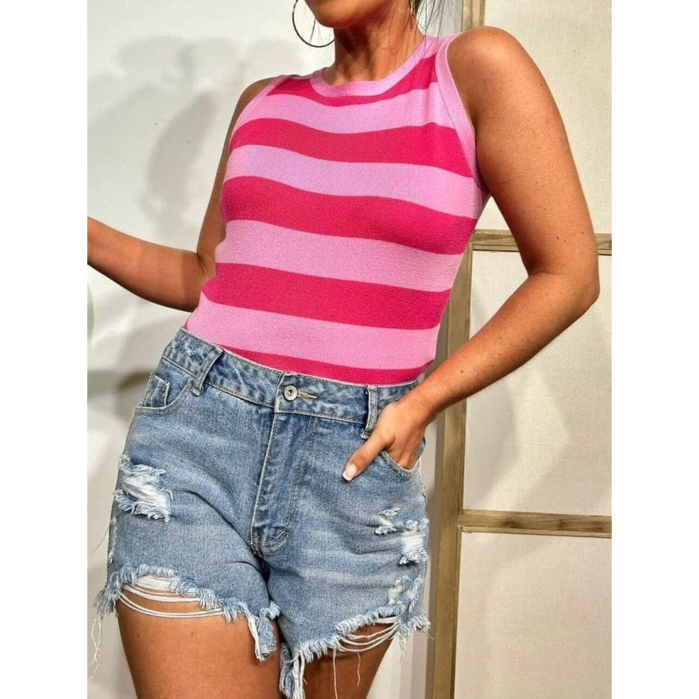 - Estampado rayas anchas en combinación rosa y fucsia.