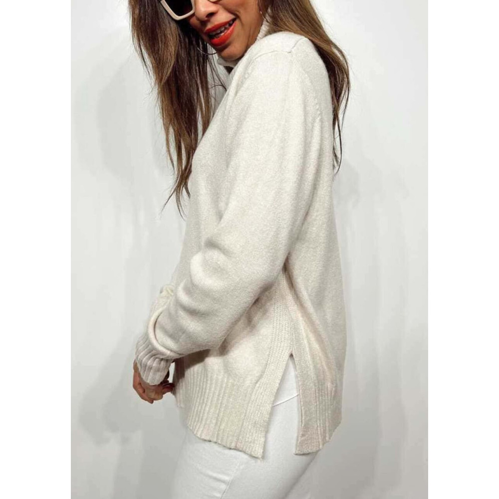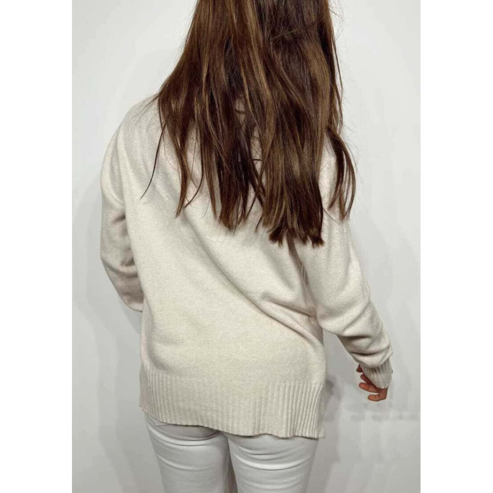 Jersey Básico Cuello Vuelto HALLENITTA Beige