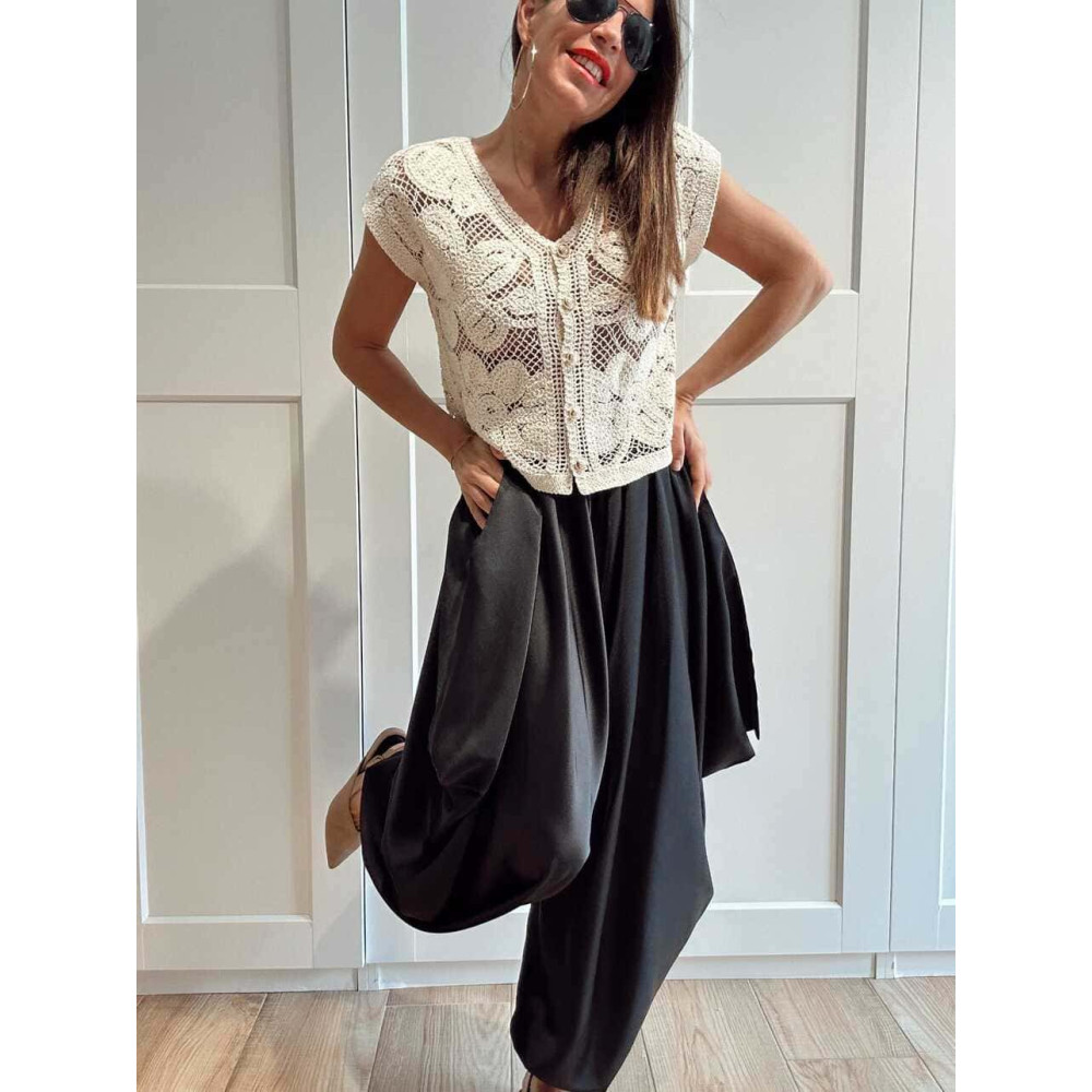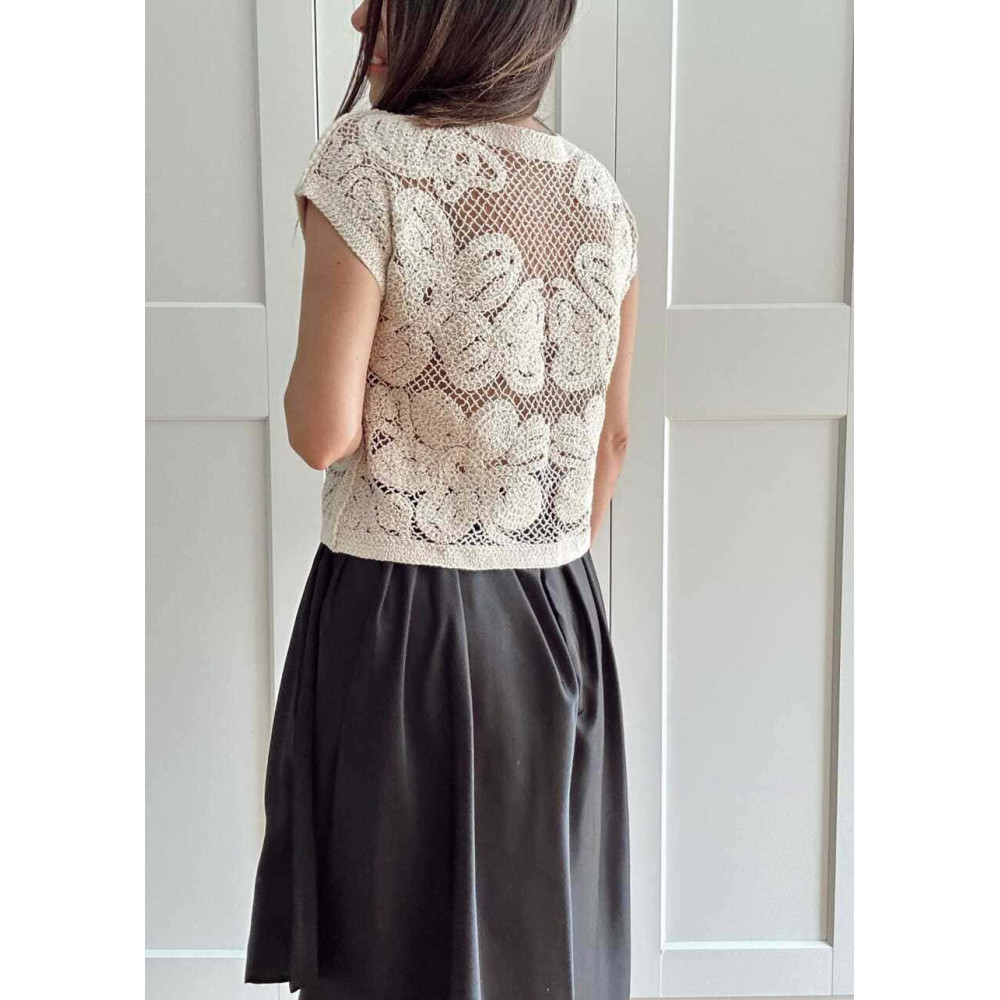 - Cuerpo en punto crochet de algodón con escote pico y manga caída.