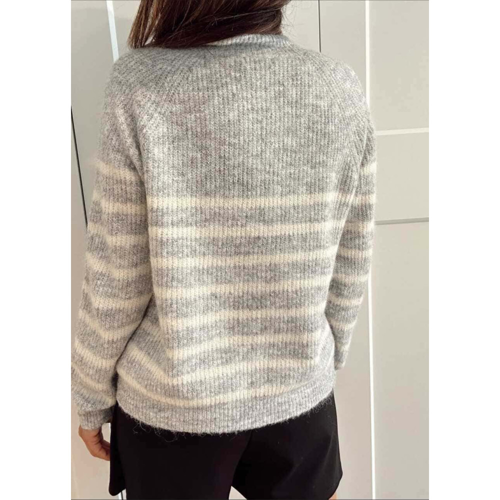 - Jersey de punto súper suave con estampado rayas en combinación gris/beige ❤