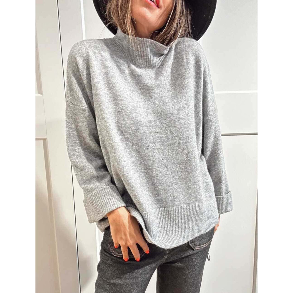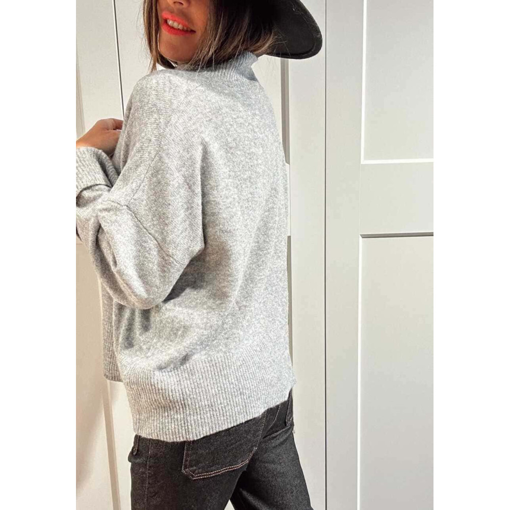 - Jersey de punto suave con cuello subido tipo chimenea.