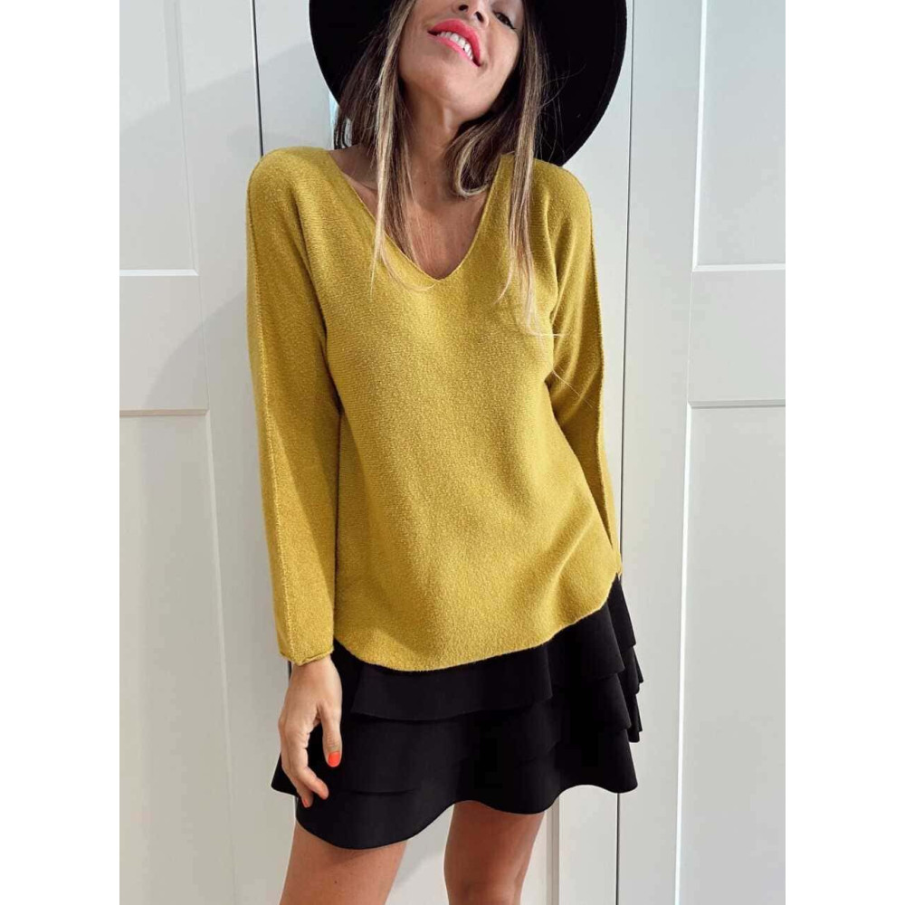 Éstas son aprox. las medidas del Punto Básico Escote Pico JANIKA Mostaza: