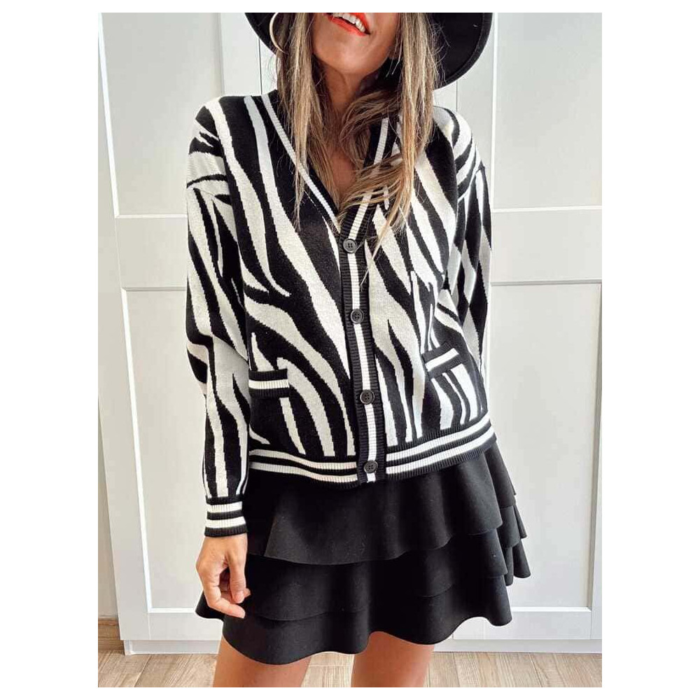 Cárdigan Print Cebra ZYNRA Negro
