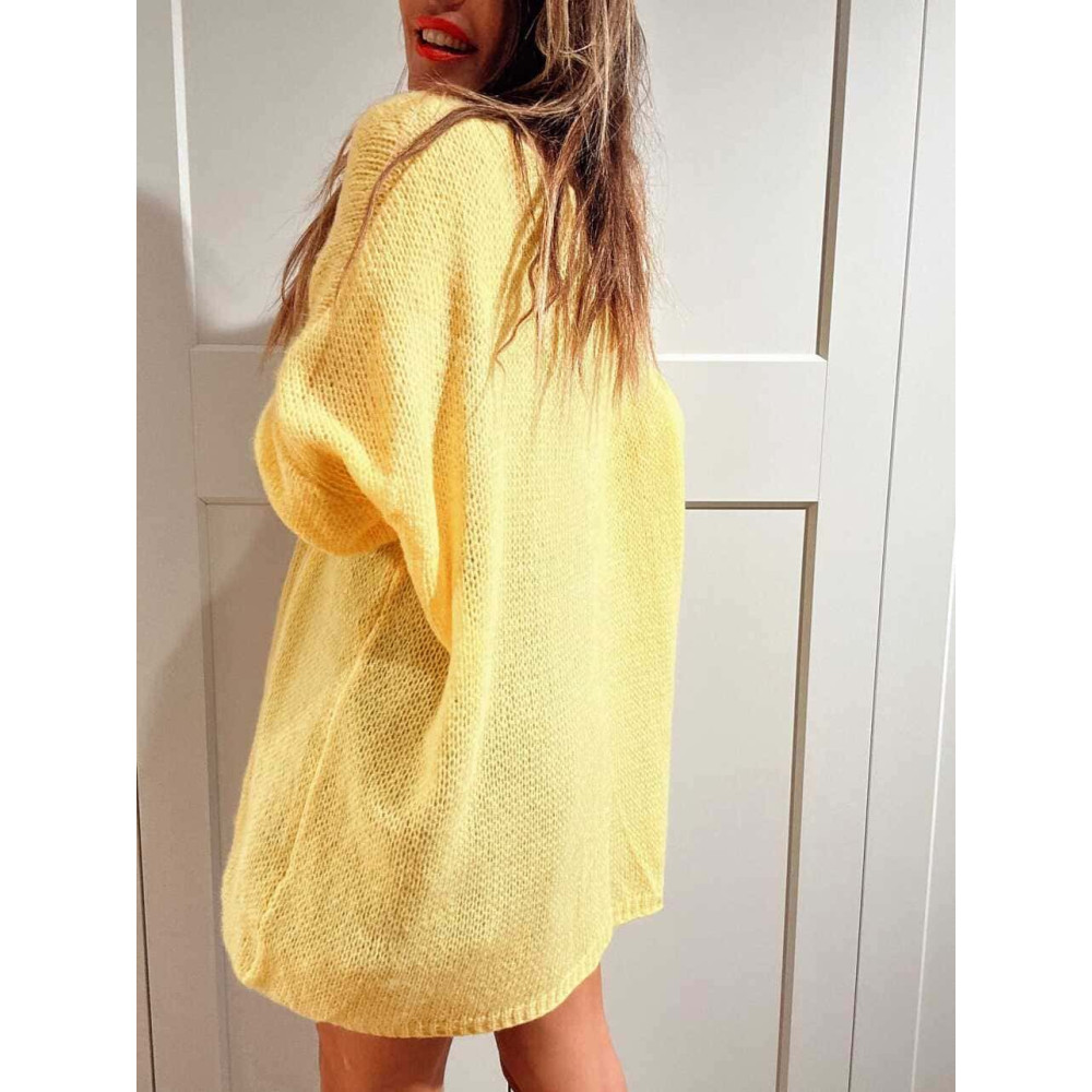 - Maxi-jersey de punto corte oversize con escote pico y manga larga.