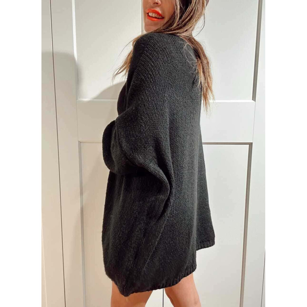 - Maxi-jersey de punto corte oversize con escote pico y manga larga.