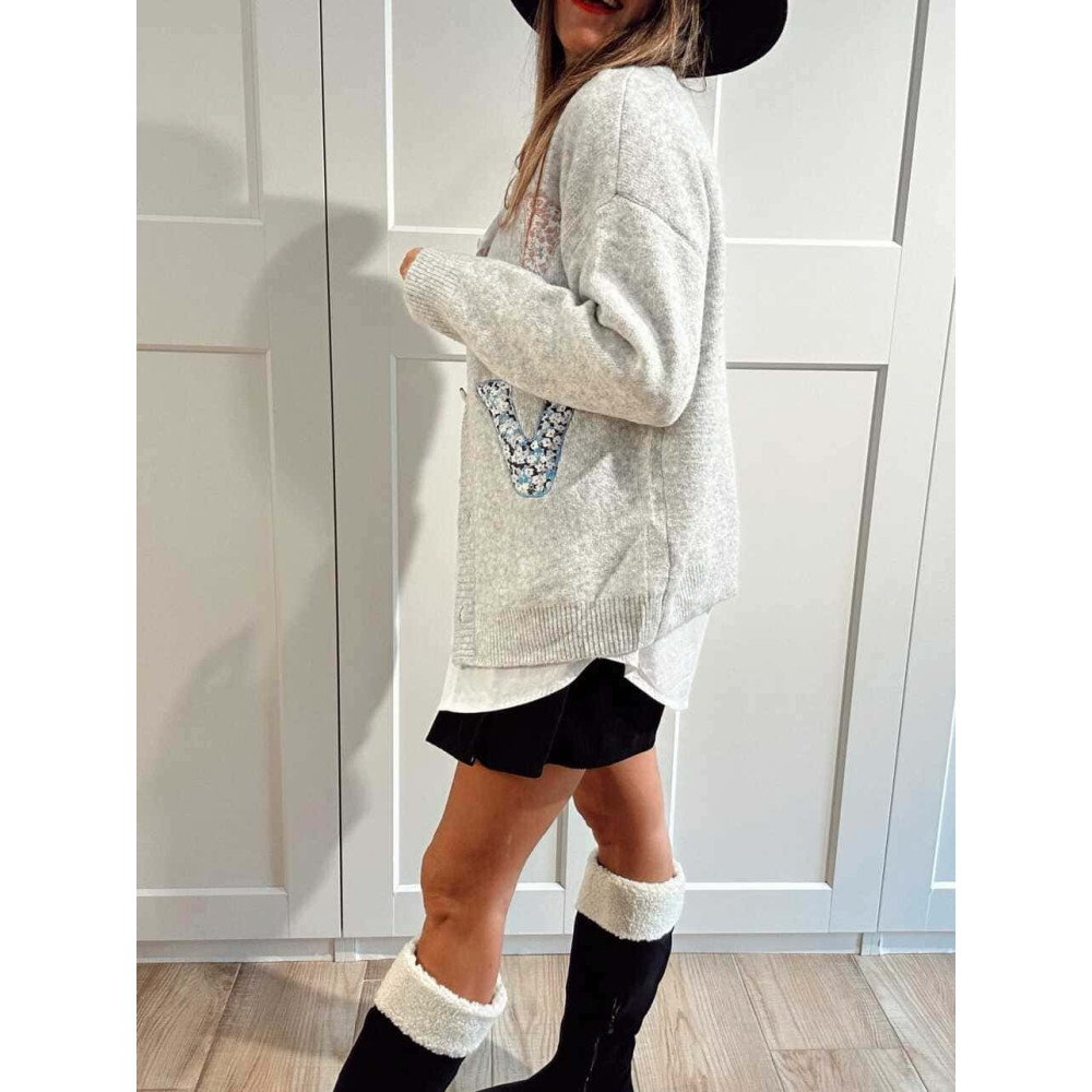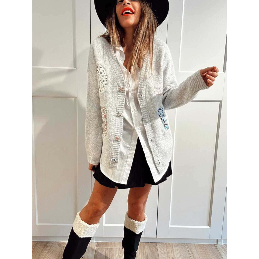 Chaqueta Punto Patchwork LOVE Gris