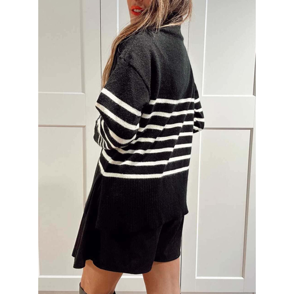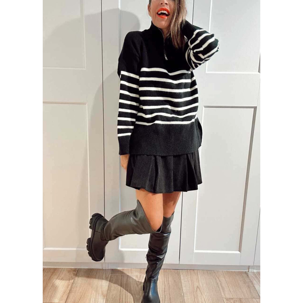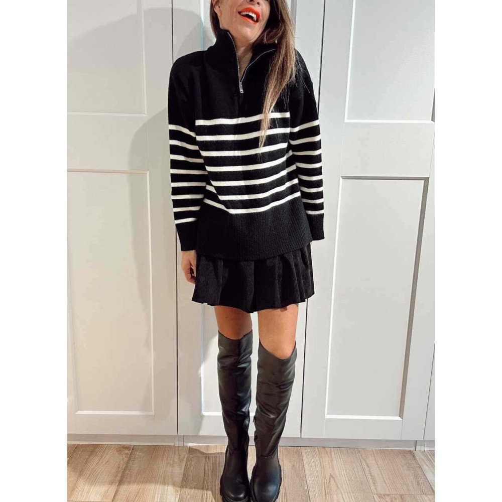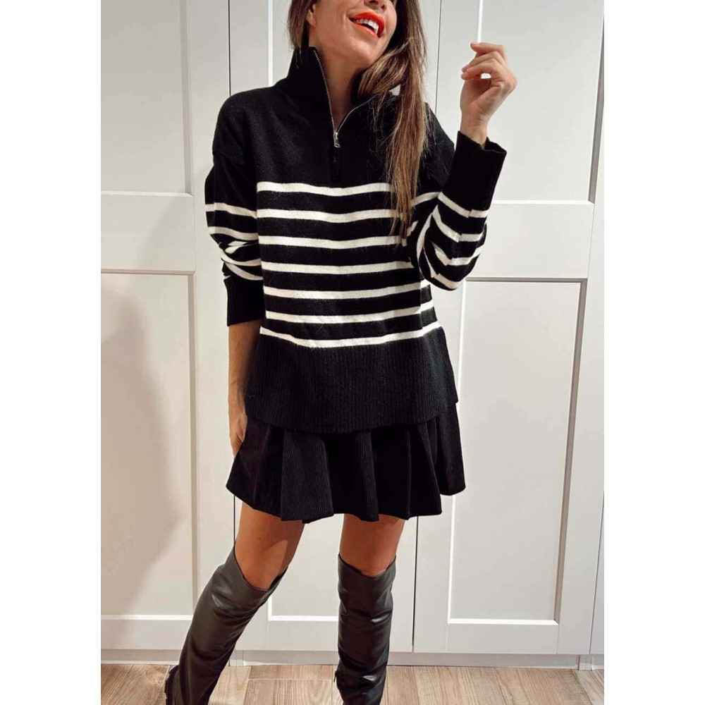 Éstas son aprox. las medidas del Jersey Rayas Cremallera MARCEAU Negro: