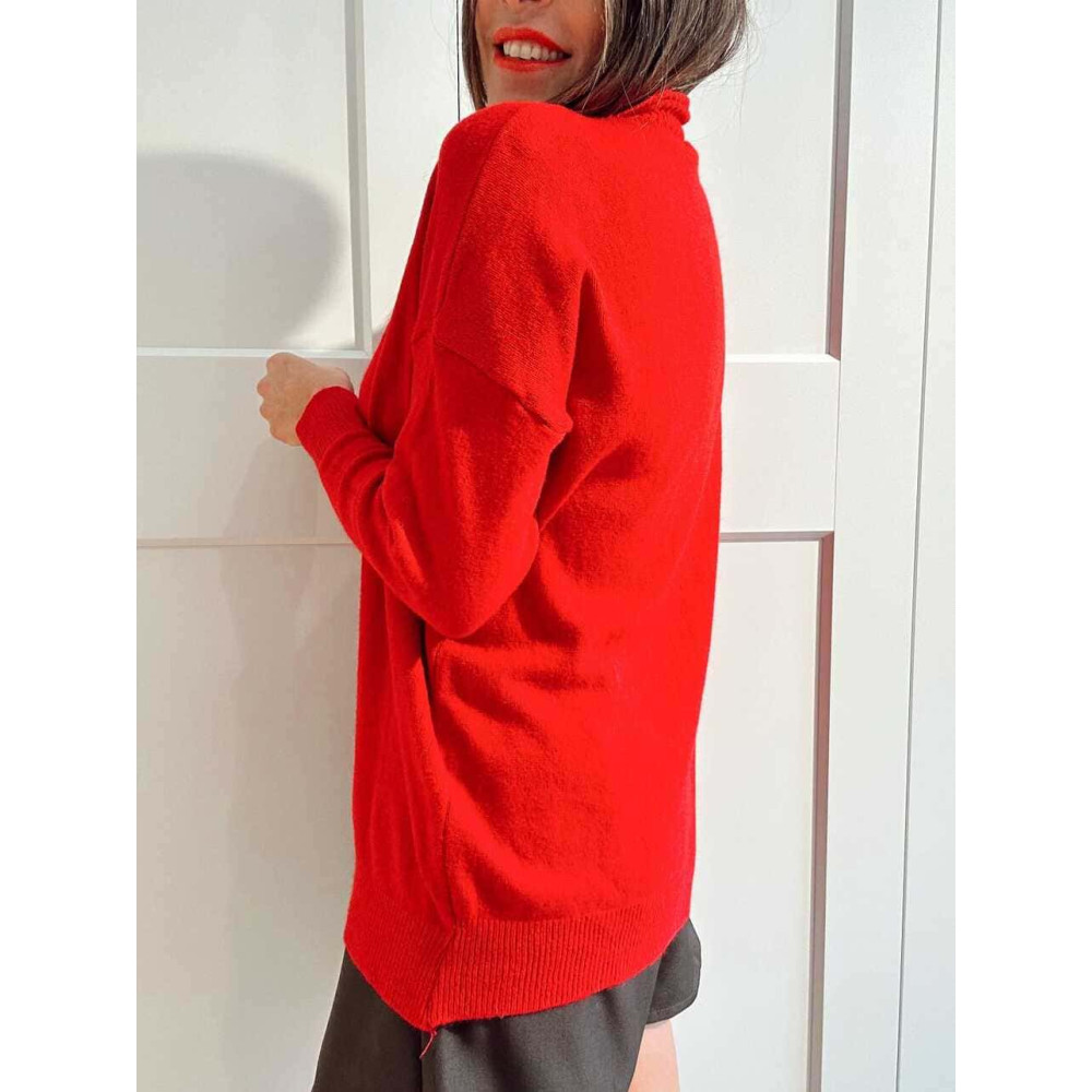 • Jersey básico de punto soft con cuello chimenea y manga larga.