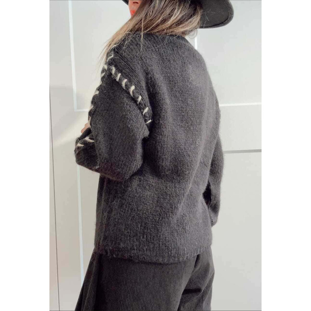 - Jersey negro de punto grueso con detalle de pespunte trenzado en color beige.