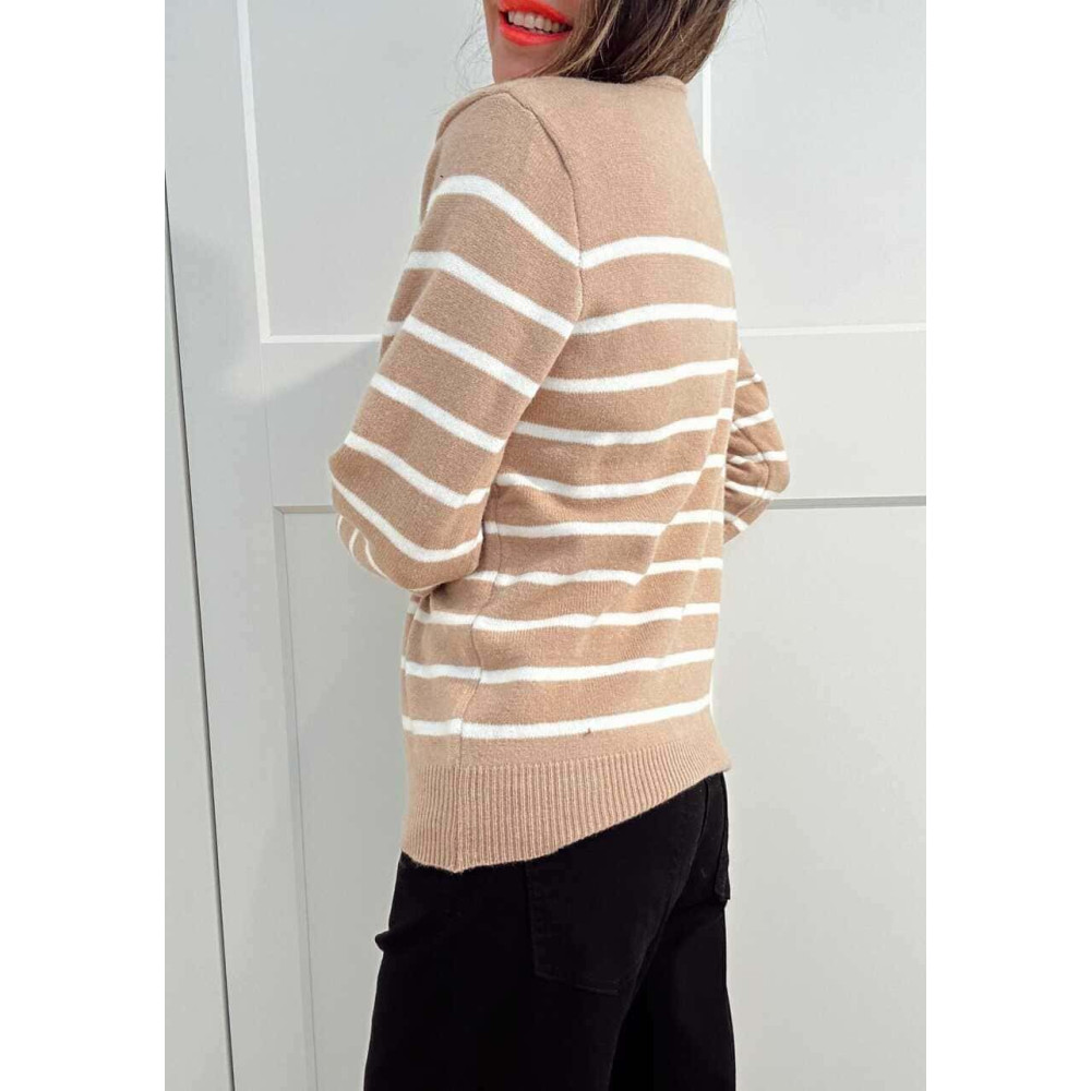- Jersey de punto soft con estampado rayas en combinación camel/blanco.