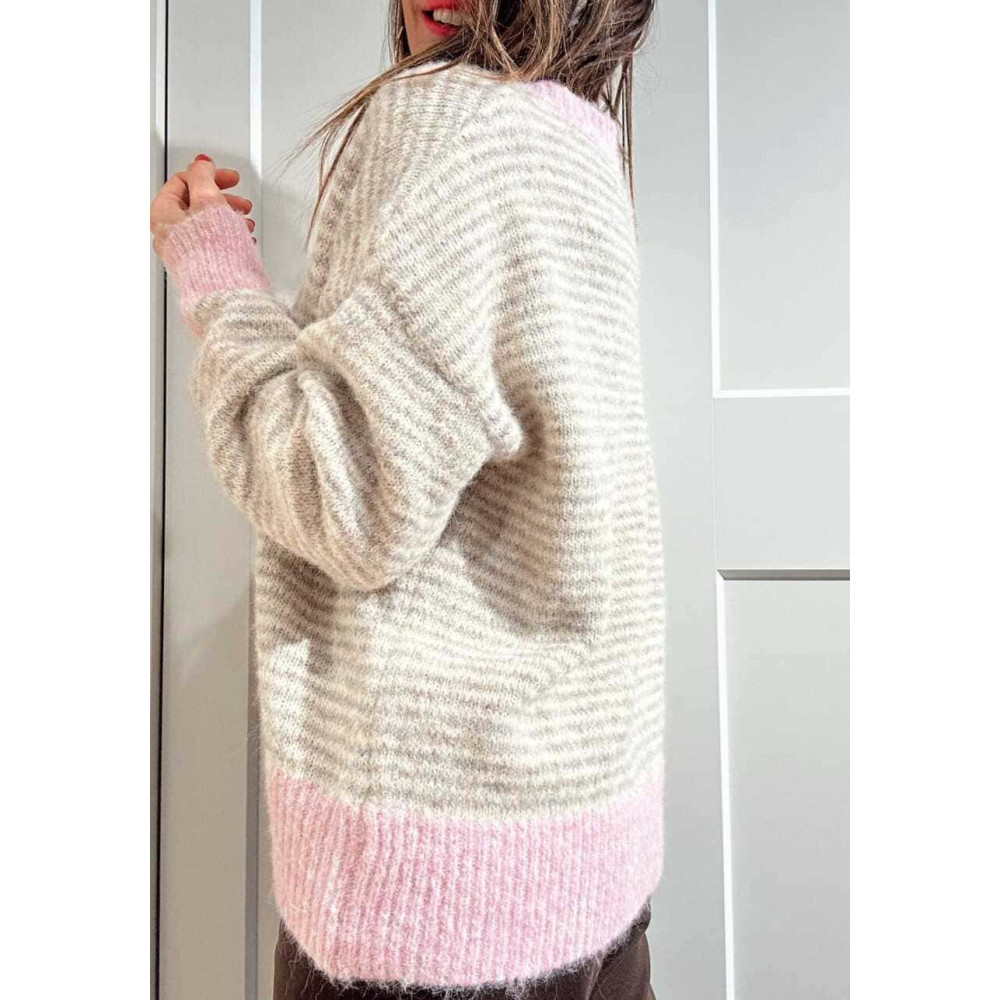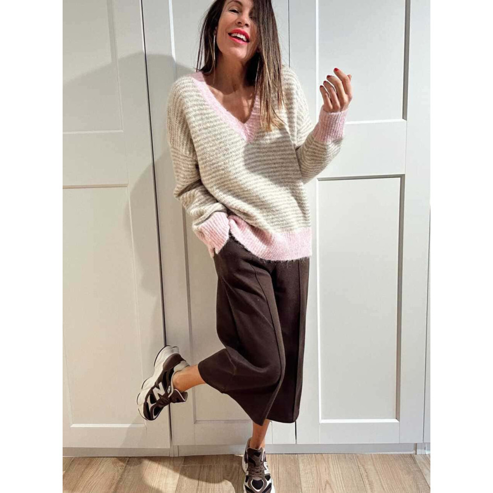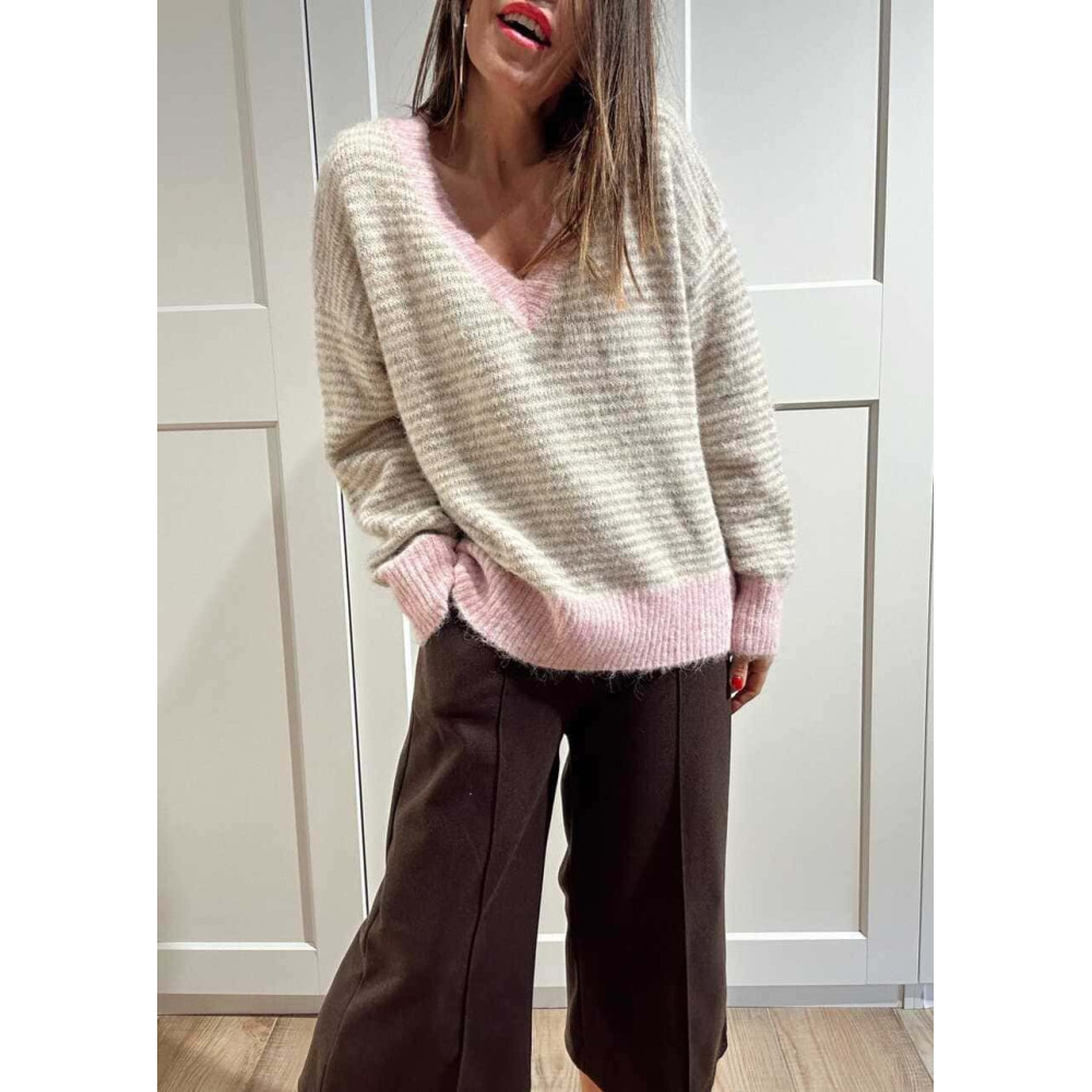 Punto Rayas Escote Pico MARVIERA Taupe/Rosa