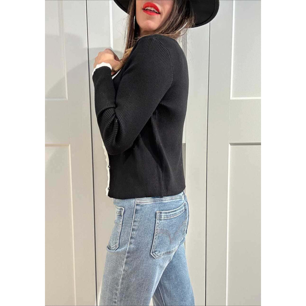 Conjunto de top y cárdigan de punto canalé elástico con terminaciones festoneadas en contraste de color. Puedes llevarlo junto o por separado... ¡¡tú eliges!! ❤
