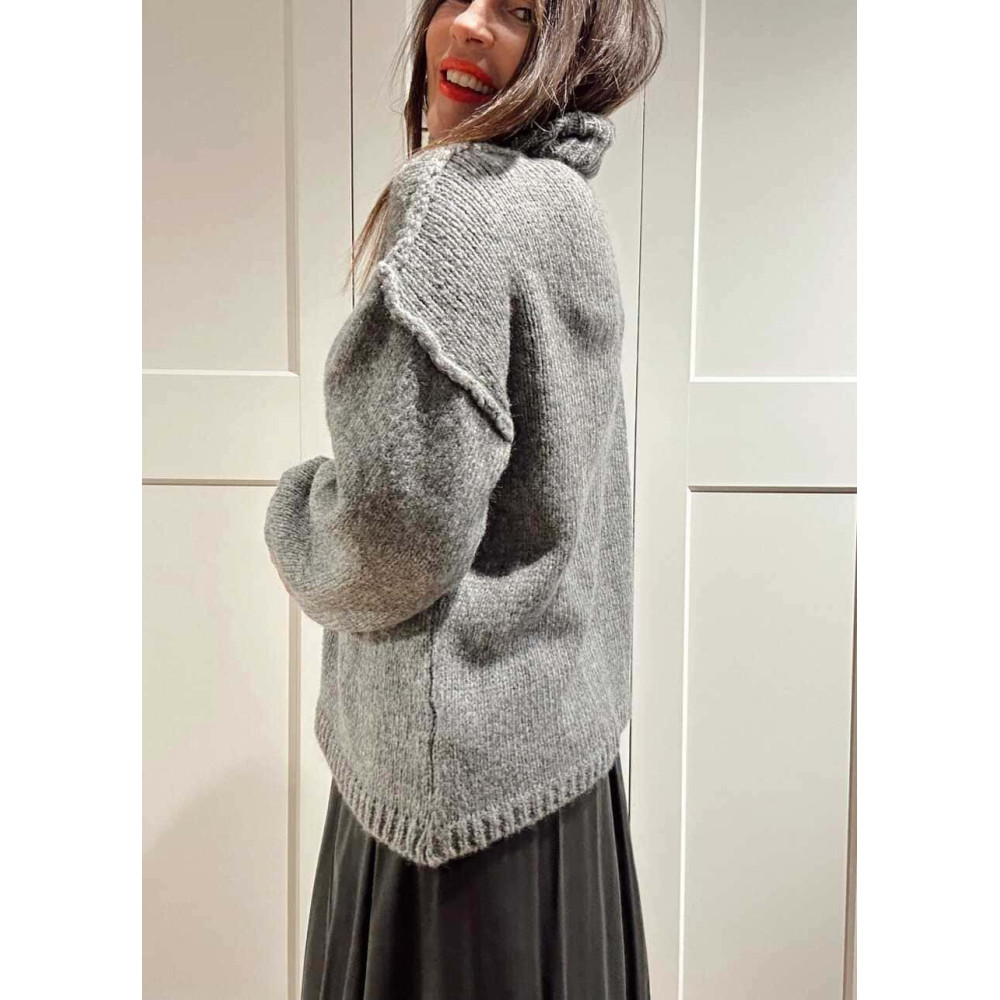 - Jersey básico de punto grueso con cuello vuelto y manga larga.