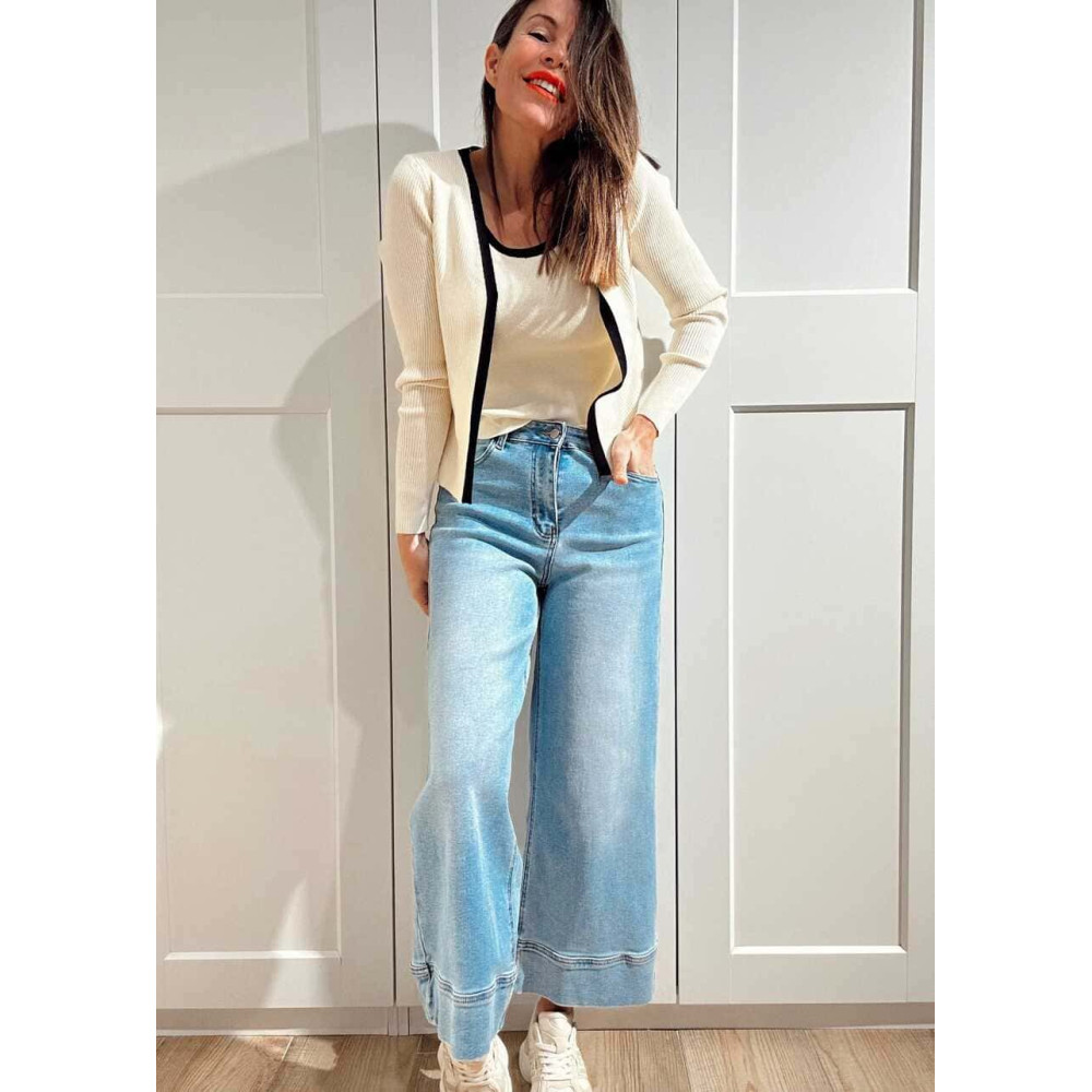 Conjunto de top y cárdigan de punto canalé elástico con vivos en contraste de color. Puedes llevarlo junto o por separado... ¡¡tú eliges!! ❤