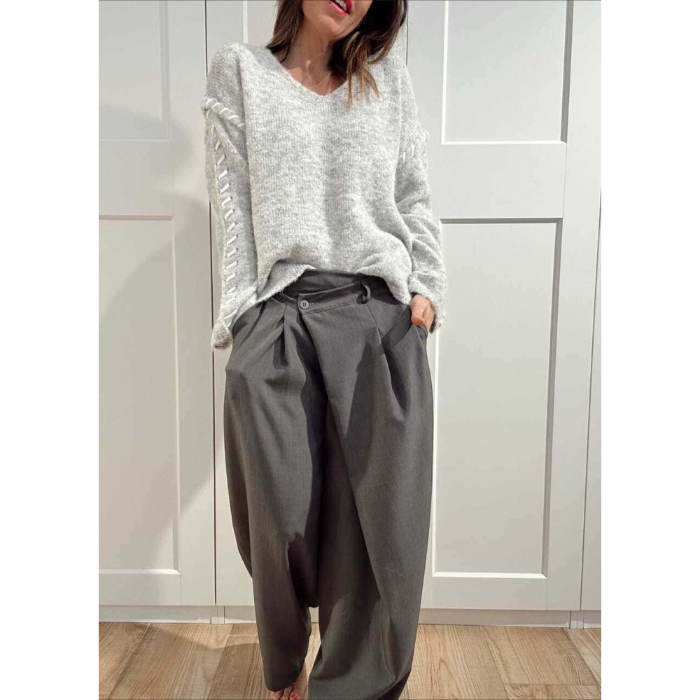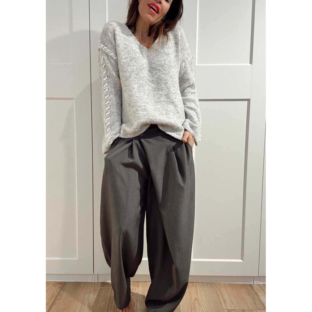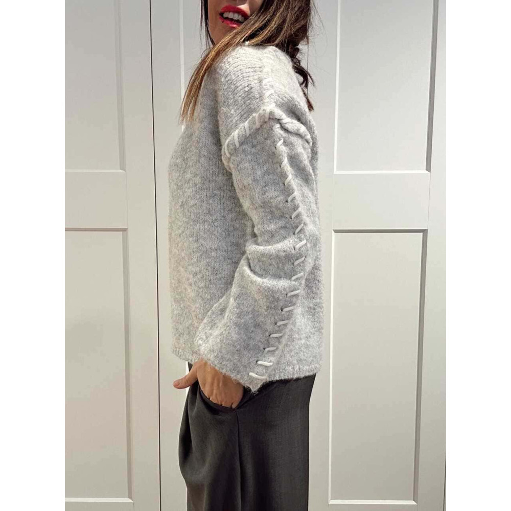 • Jersey gris vigoré de punto suave con detalle de pespunte trenzado en color blanco.