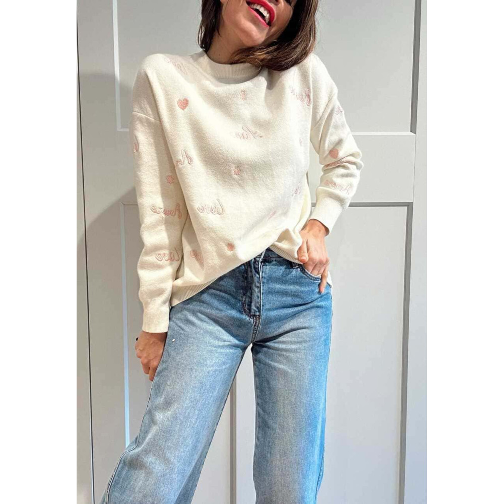 - Diseño con bordado de corazones, estrellas y mensaje "Love" en delantero y mangas.