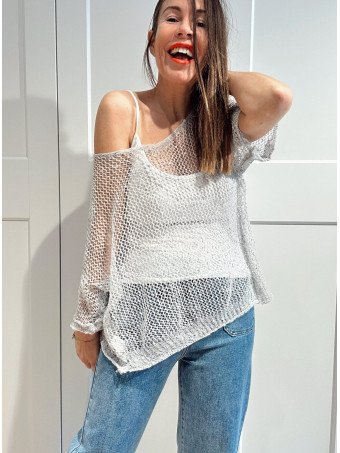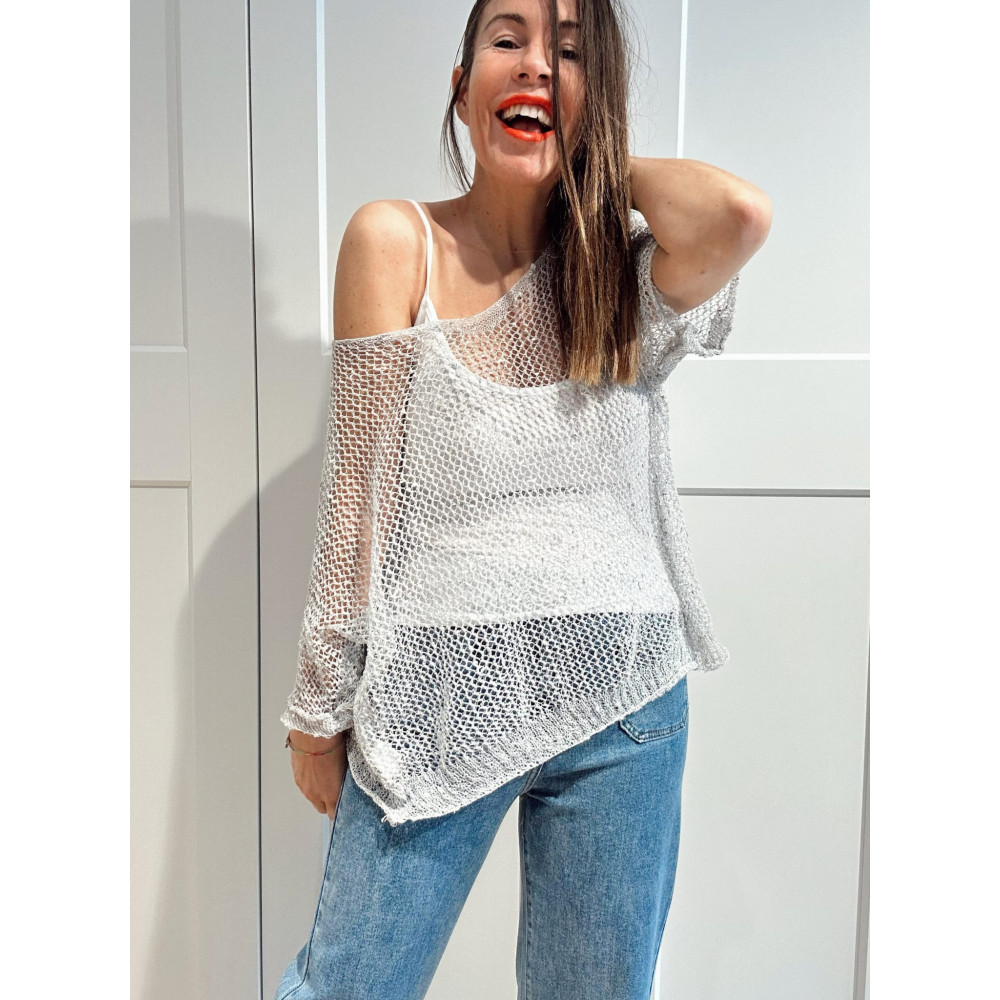 Conjunto de dos prendas compuesto por suéter de punto calado y camiseta básica de tirantes. Puedes llevarlas juntas o por separado... ¡¡tú eliges!! ❤