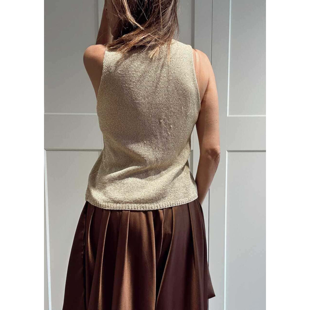 - Cuerpo de punto con detalle de hilo metalizado oro.