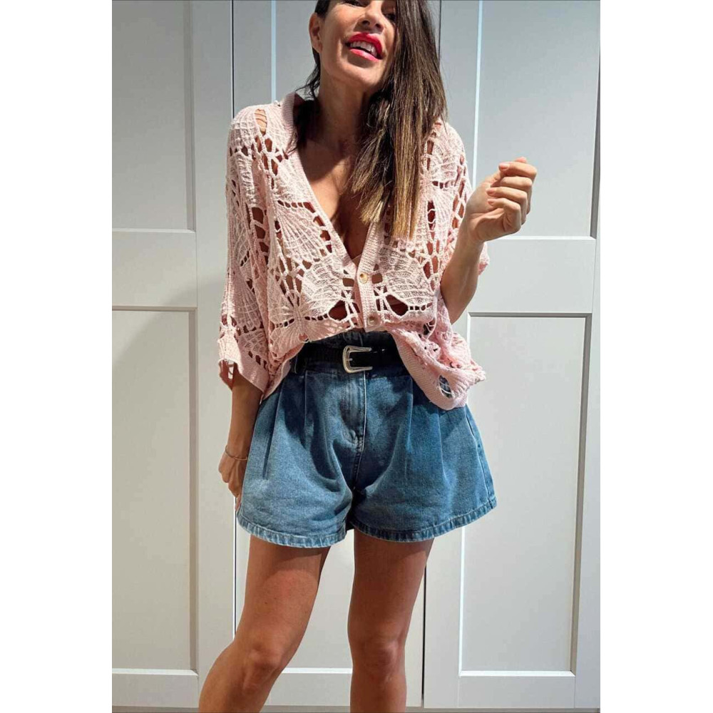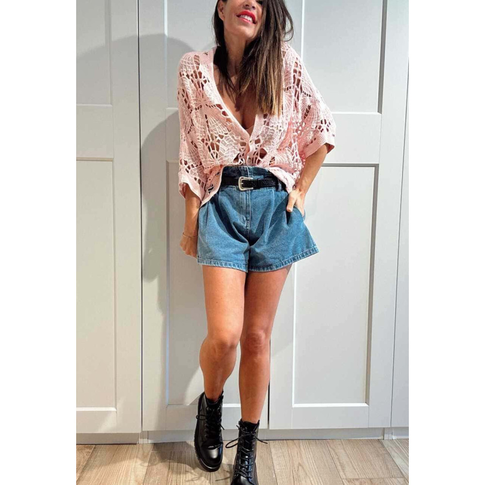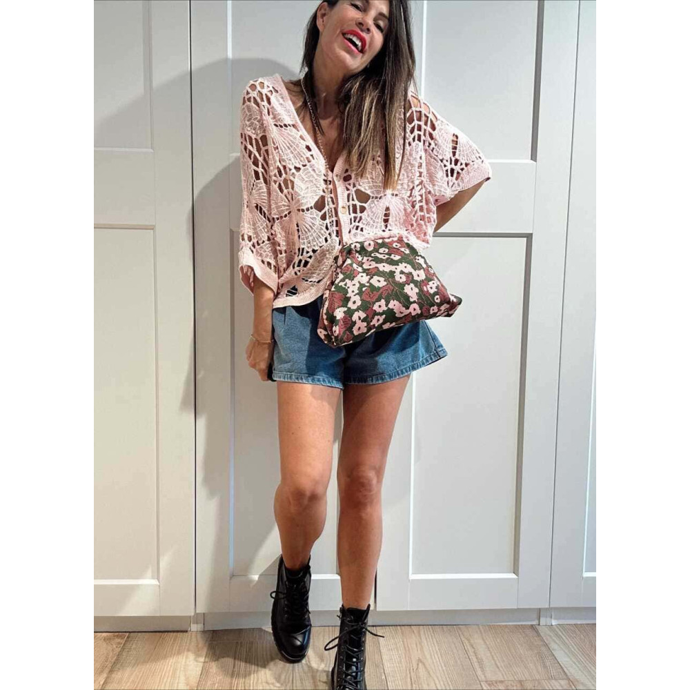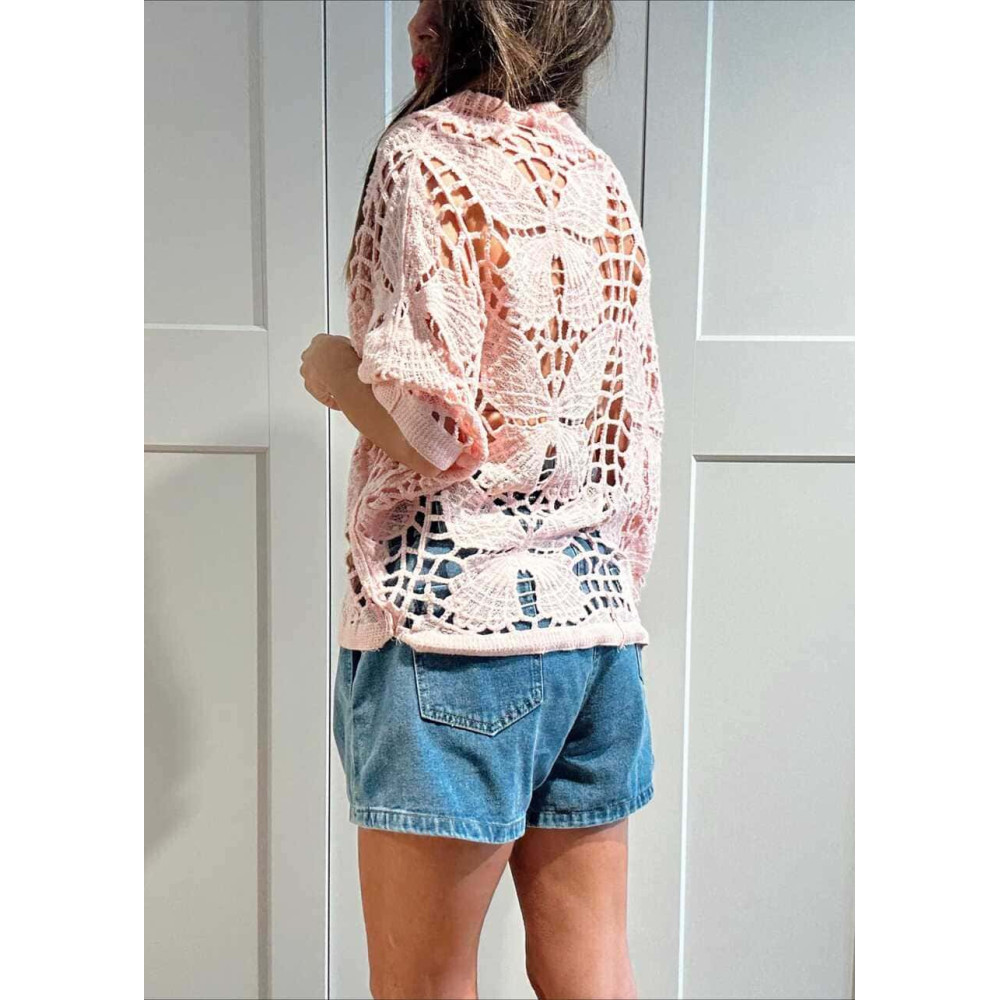 Cárdigan Crochet Murciélago SABIELA Rosa
