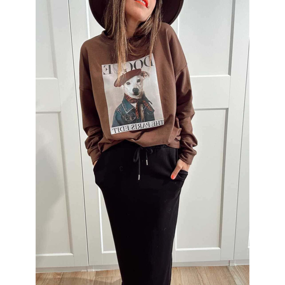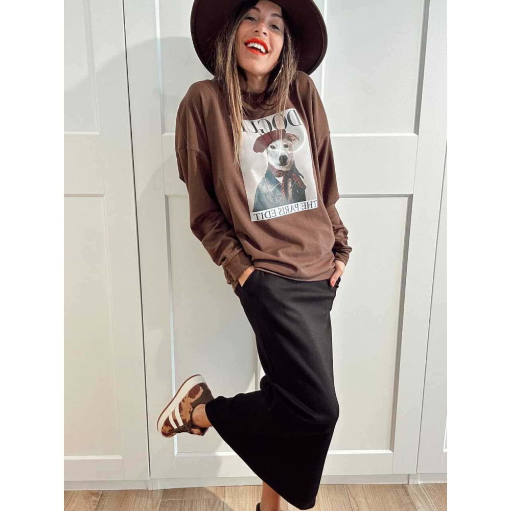 - Sudadera fina de algodón con print perruno y mensaje con juego de palabras.