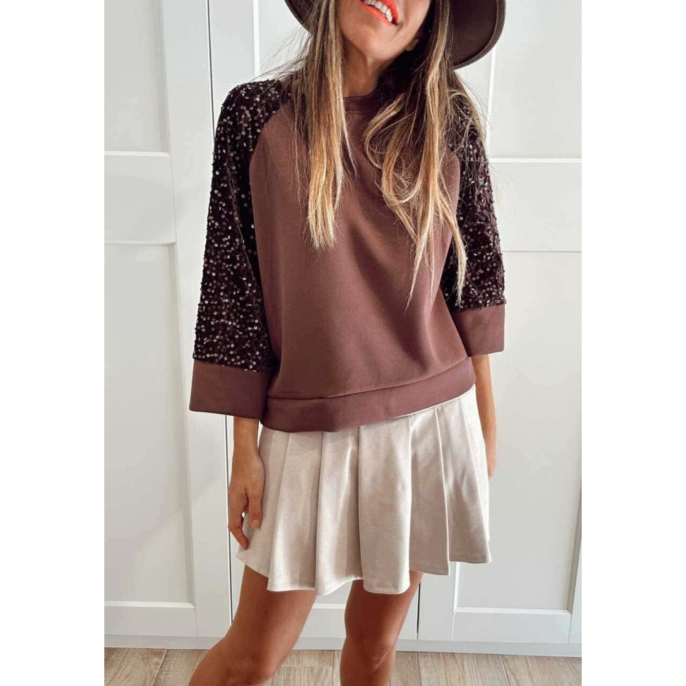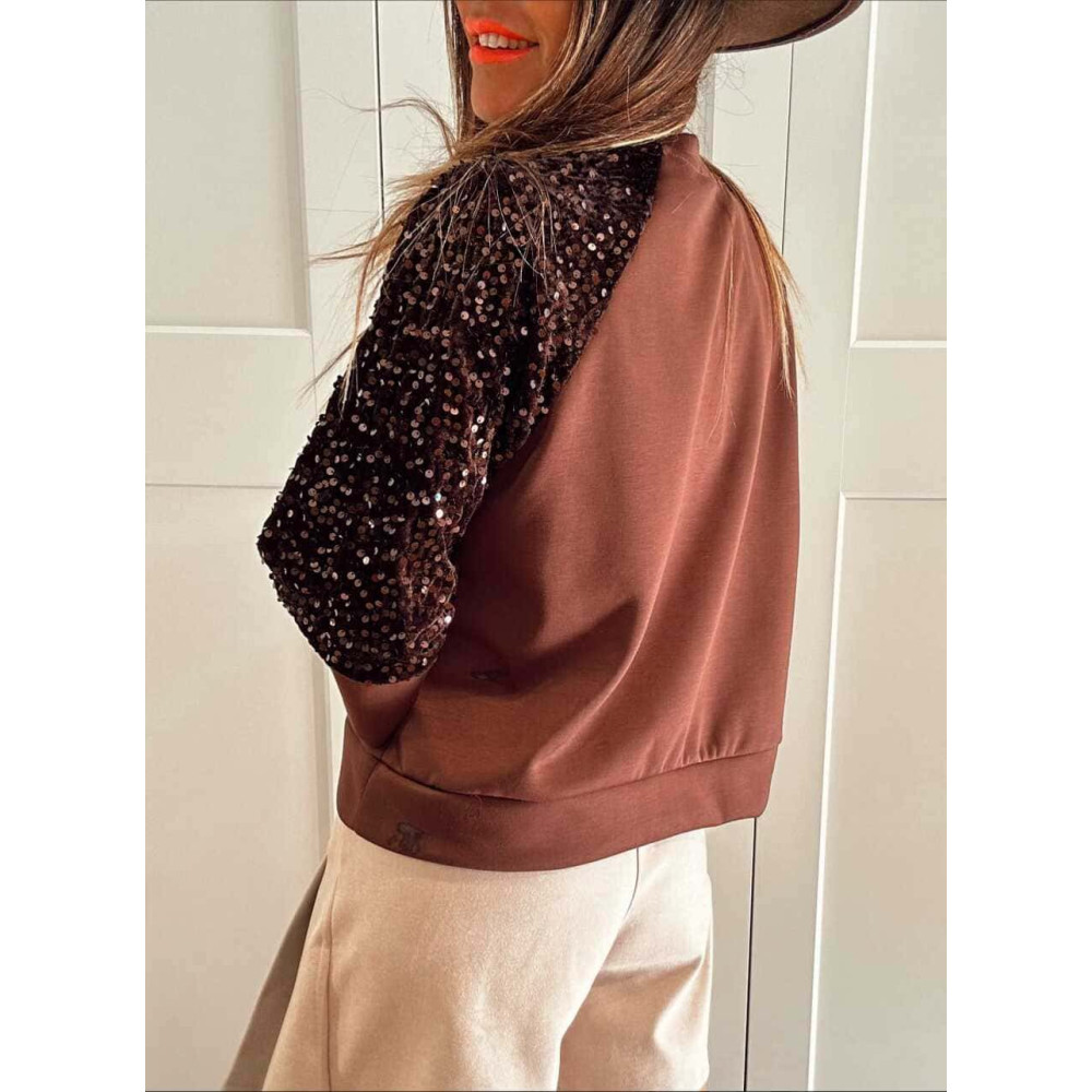 Sudadera Soft Touch Lentejuelas LUMARYS Marrón