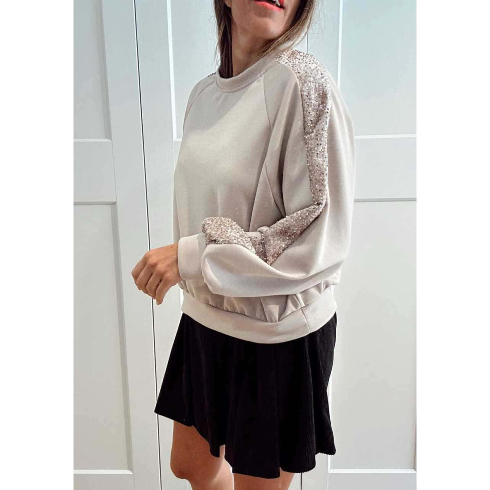 Sudadera Soft Touch Lentejuelas GLISVA Beige