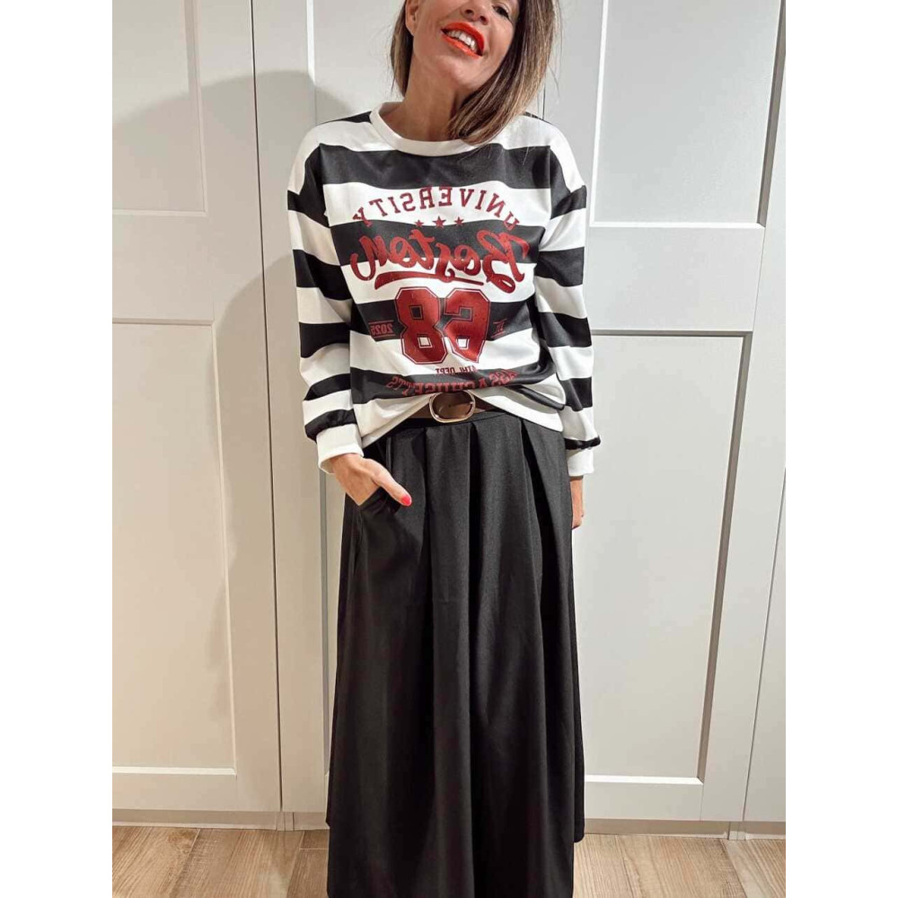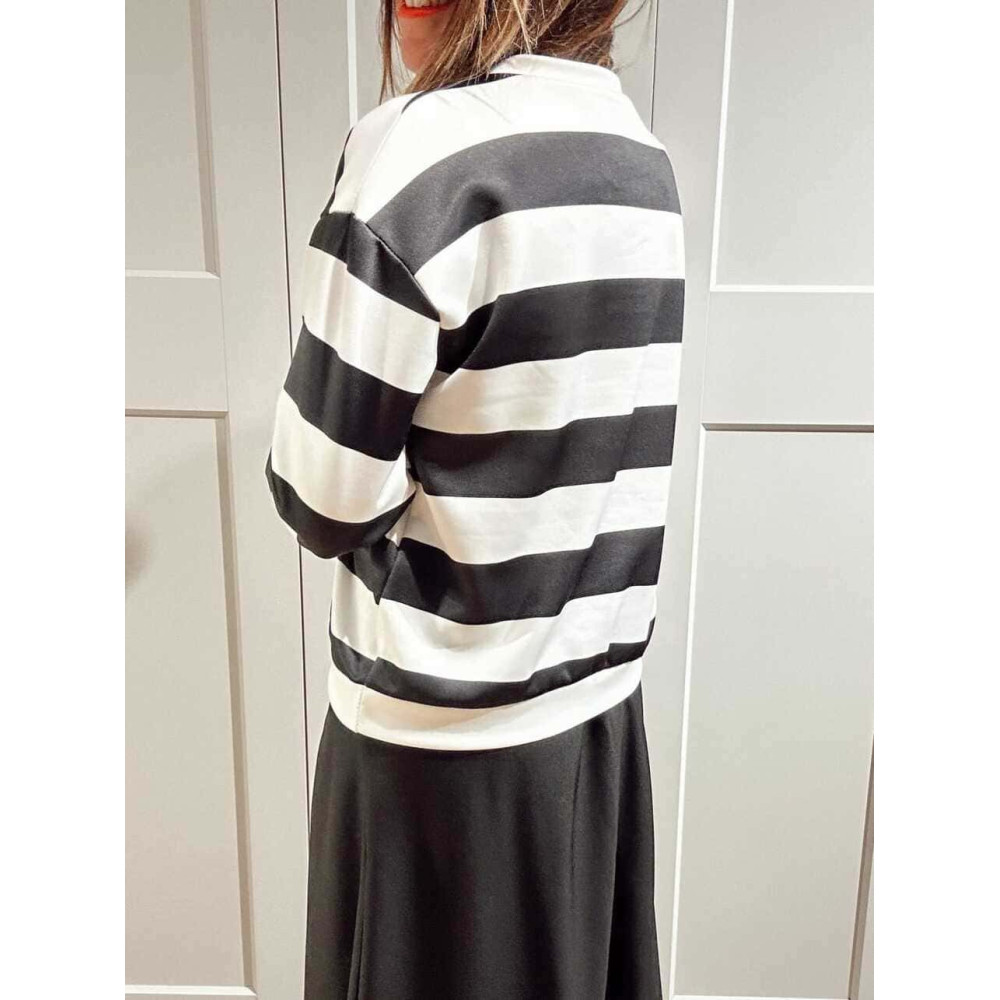 - Sudadera de mujer estilo varsity con estampado rayas en combinación blanco/negro.