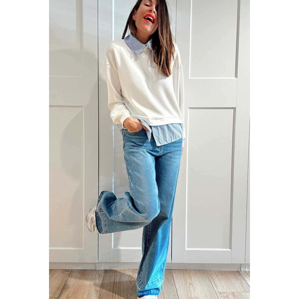 Sudadera Modal Efecto Sobrepuesto KELLANOR Blanco