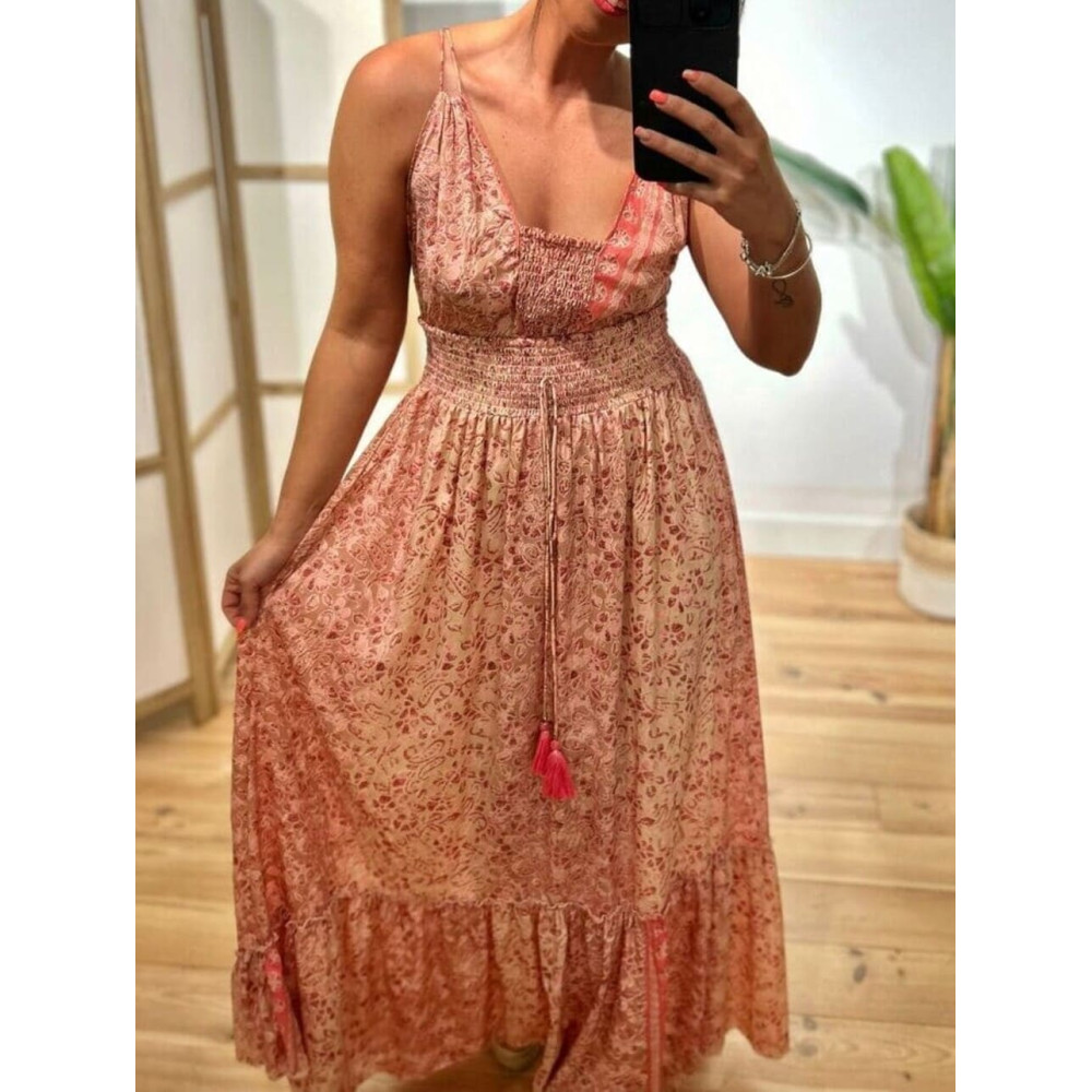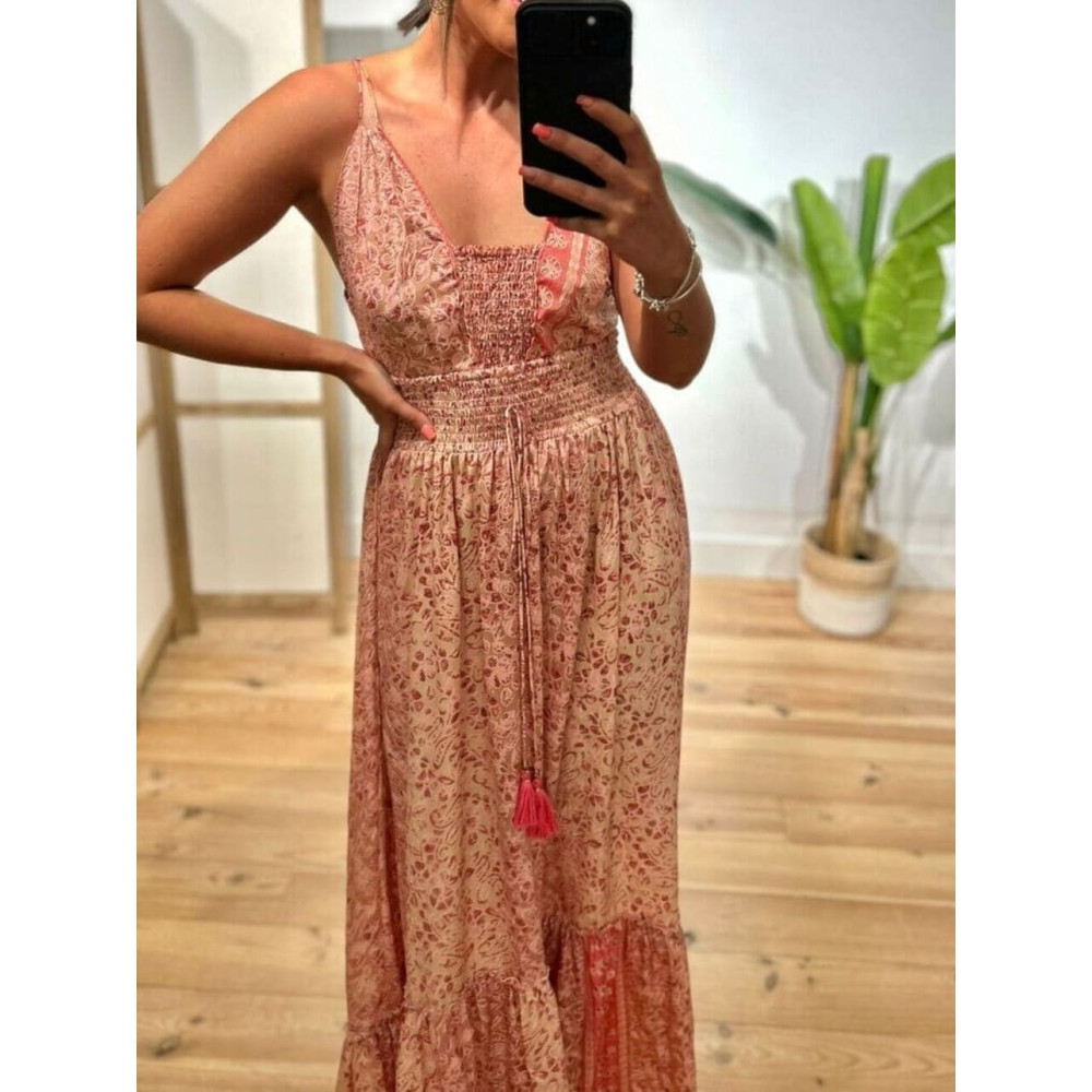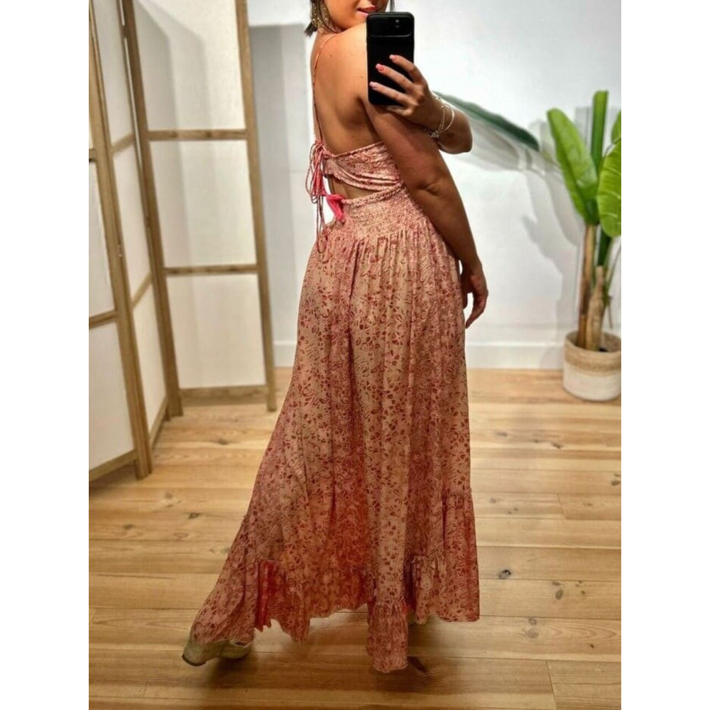 - Vestido largo de estilo boho-chic con panel avolantado en el bajo.