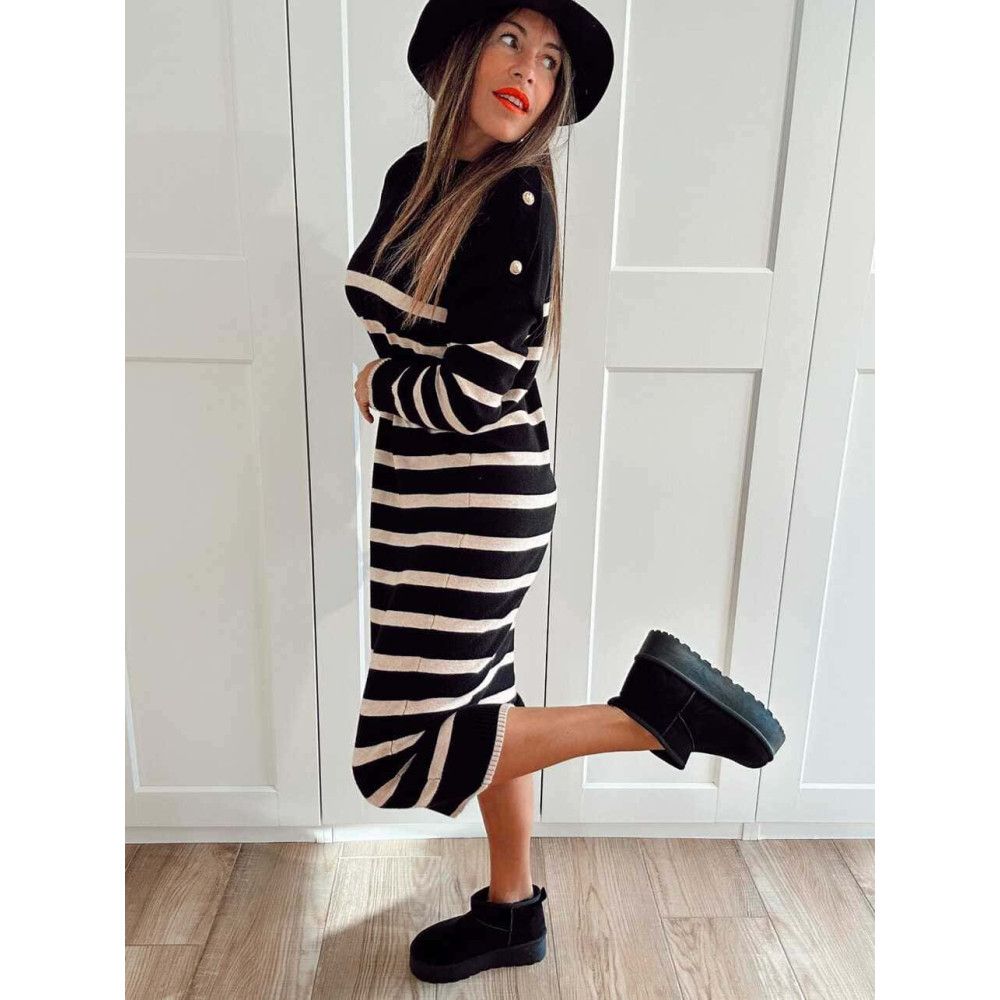 Éstas son aprox. la equivalencia de tallas y medidas del Vestido Punto Rayas TEBOW Negro: