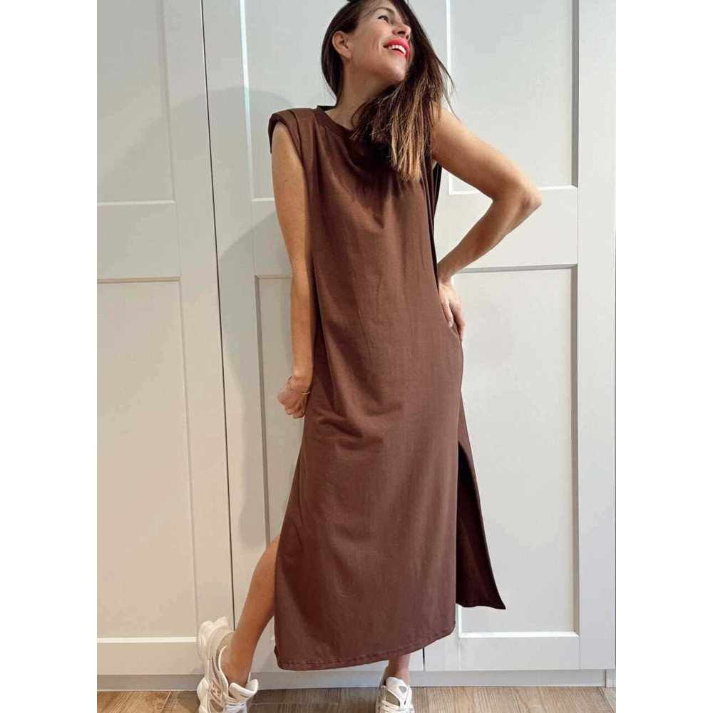Vestido Básico Hombreras VARSOVIE Marrón