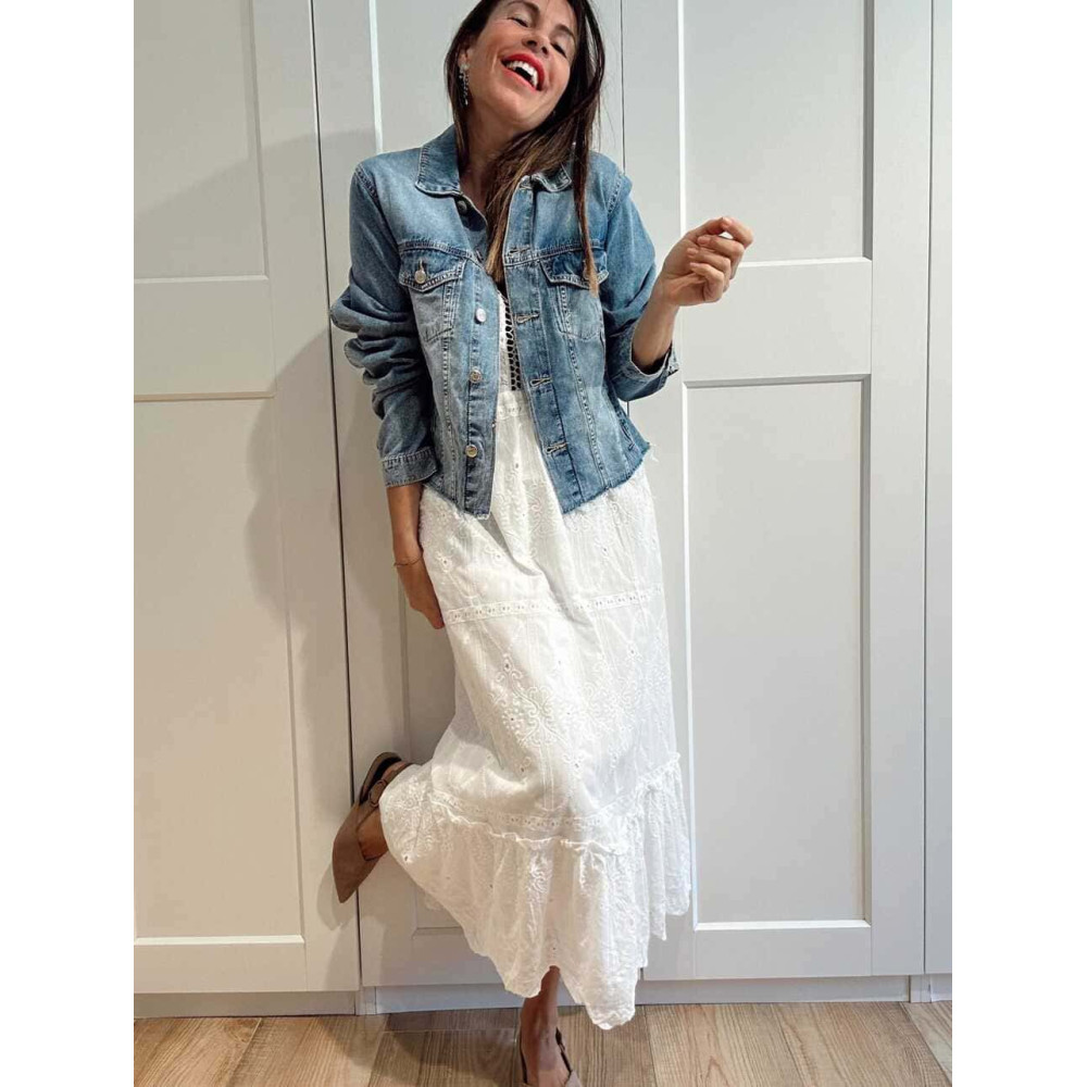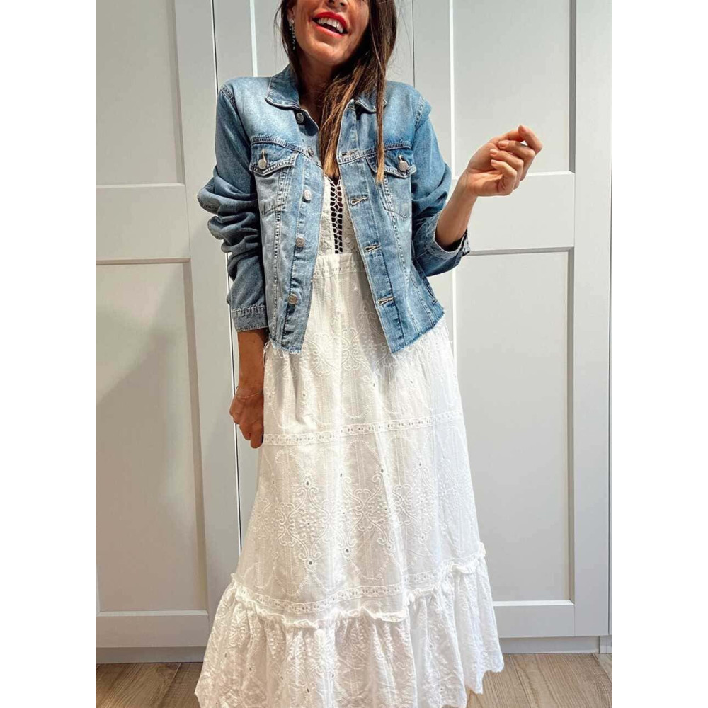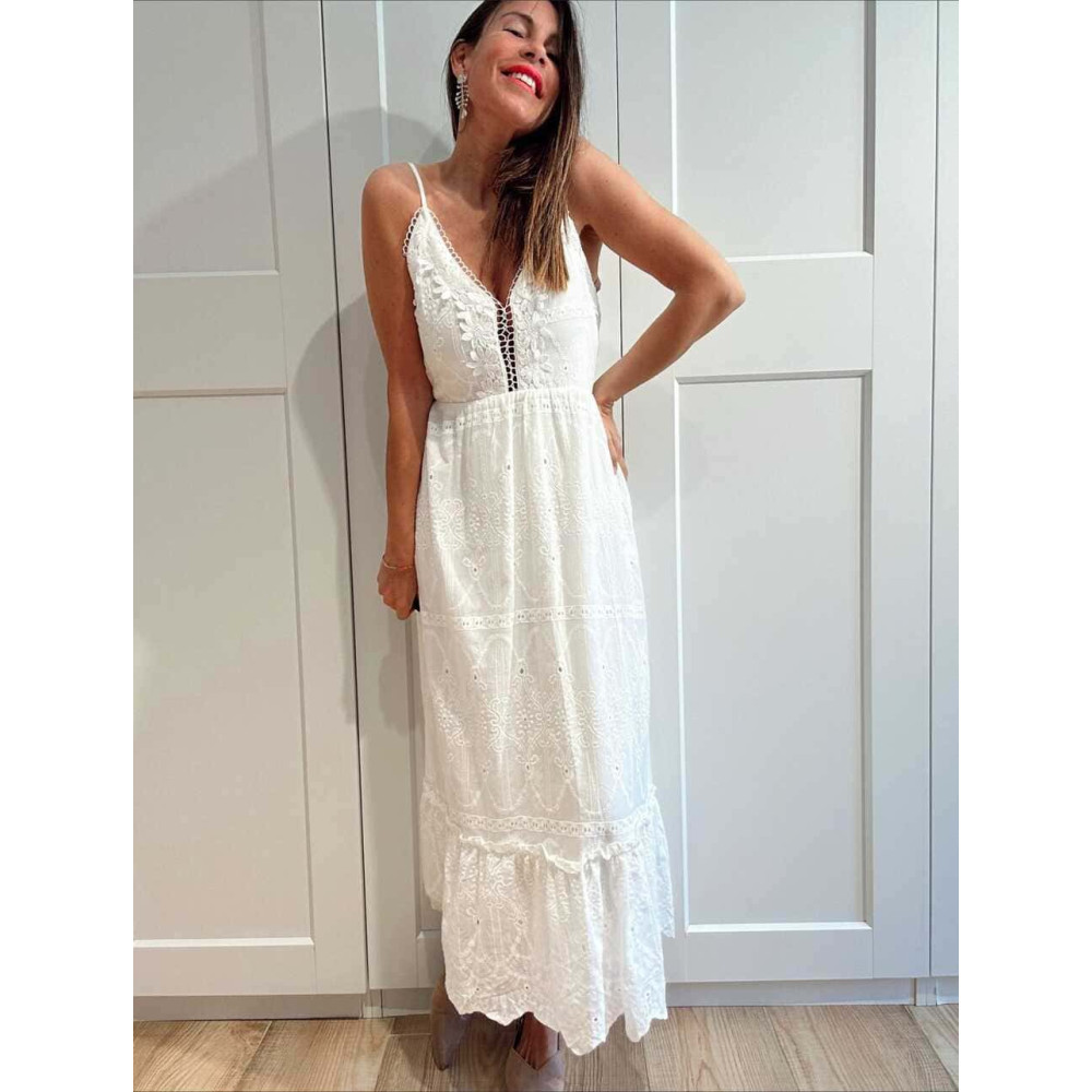 • Vestido largo de estilo boho chic con bordado-perforado all over.