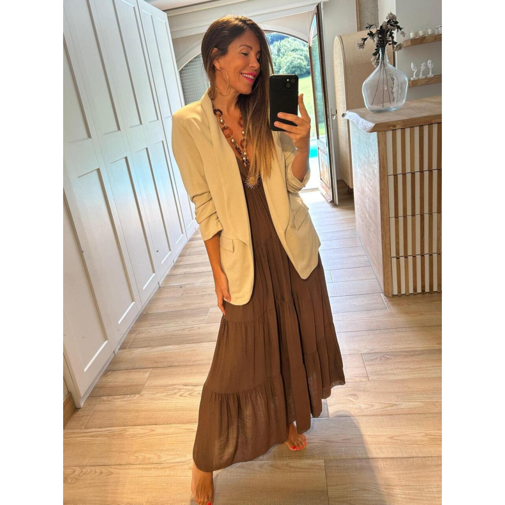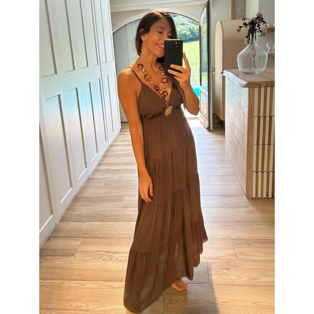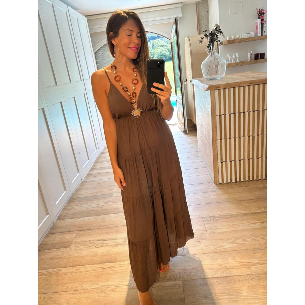 Vestido Paneles Broche Sol ZAELITH Marrón