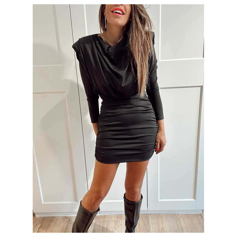 Vestido Drapeado Hombreras PHAIDRA Negro