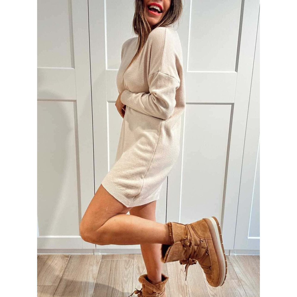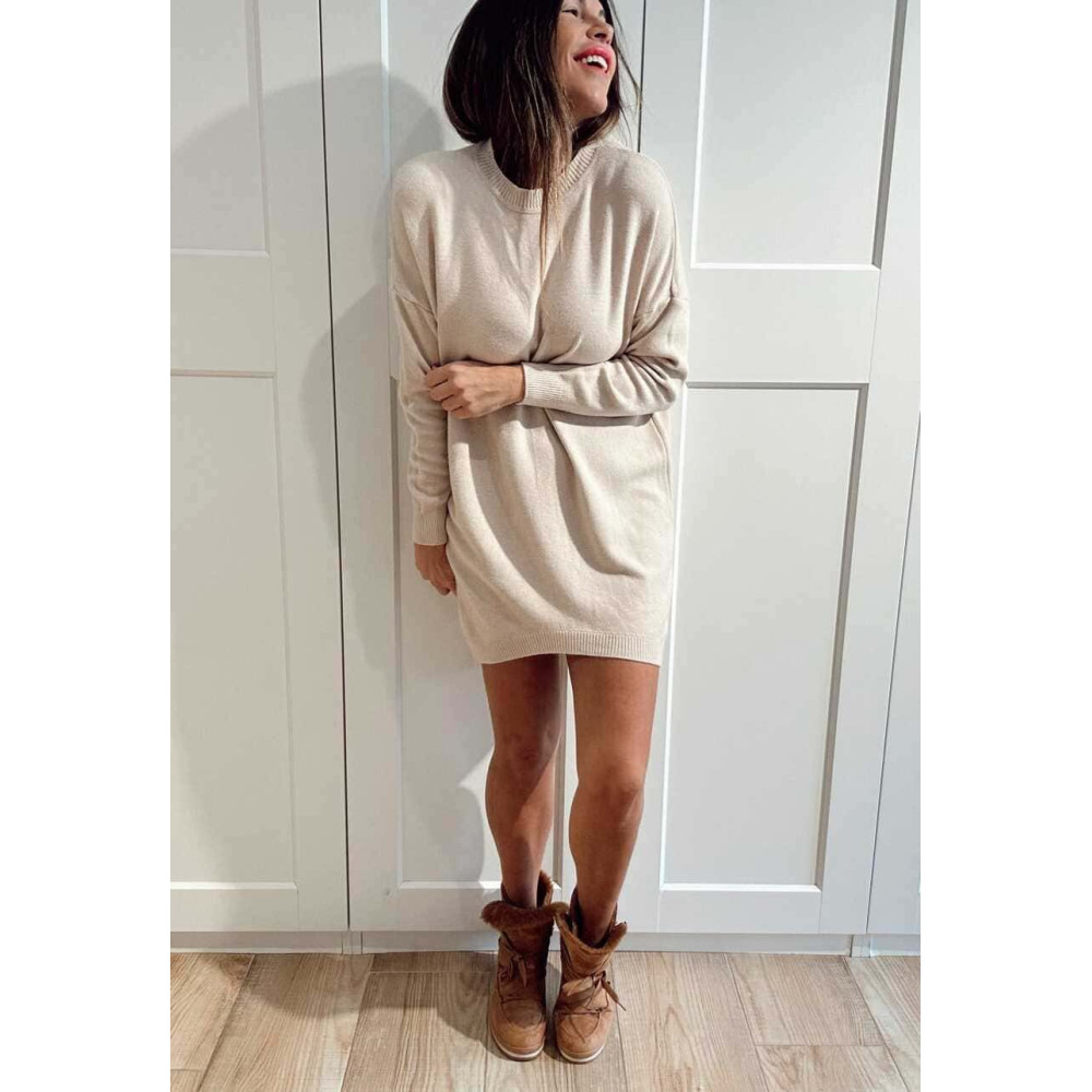 Éstas son aprox. las medidas del Vestido Básico Punto DEYLAN Beige: