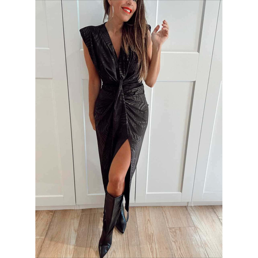 - Diseño que realza la silueta gracias a su corte ajustado y fruncido efecto nudo en la zona de la cintura.