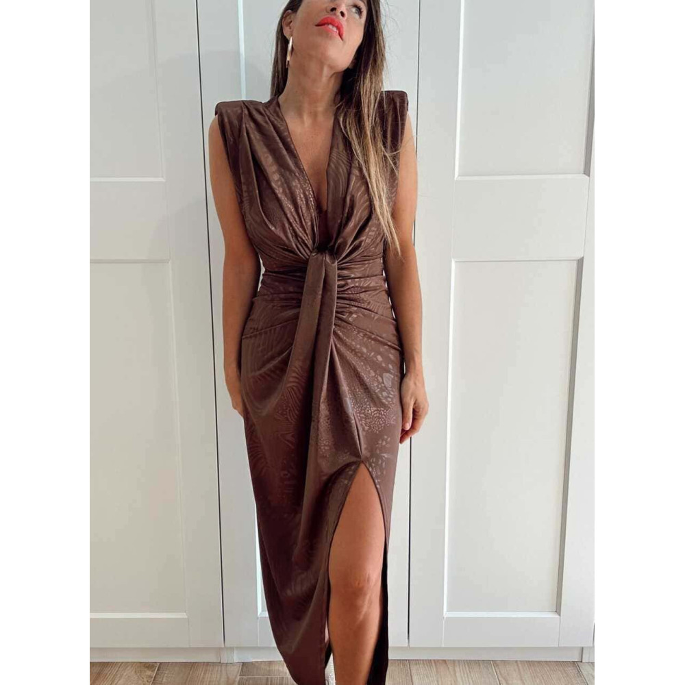 Vestido Drapeado Hombreras SEREIN Marrón