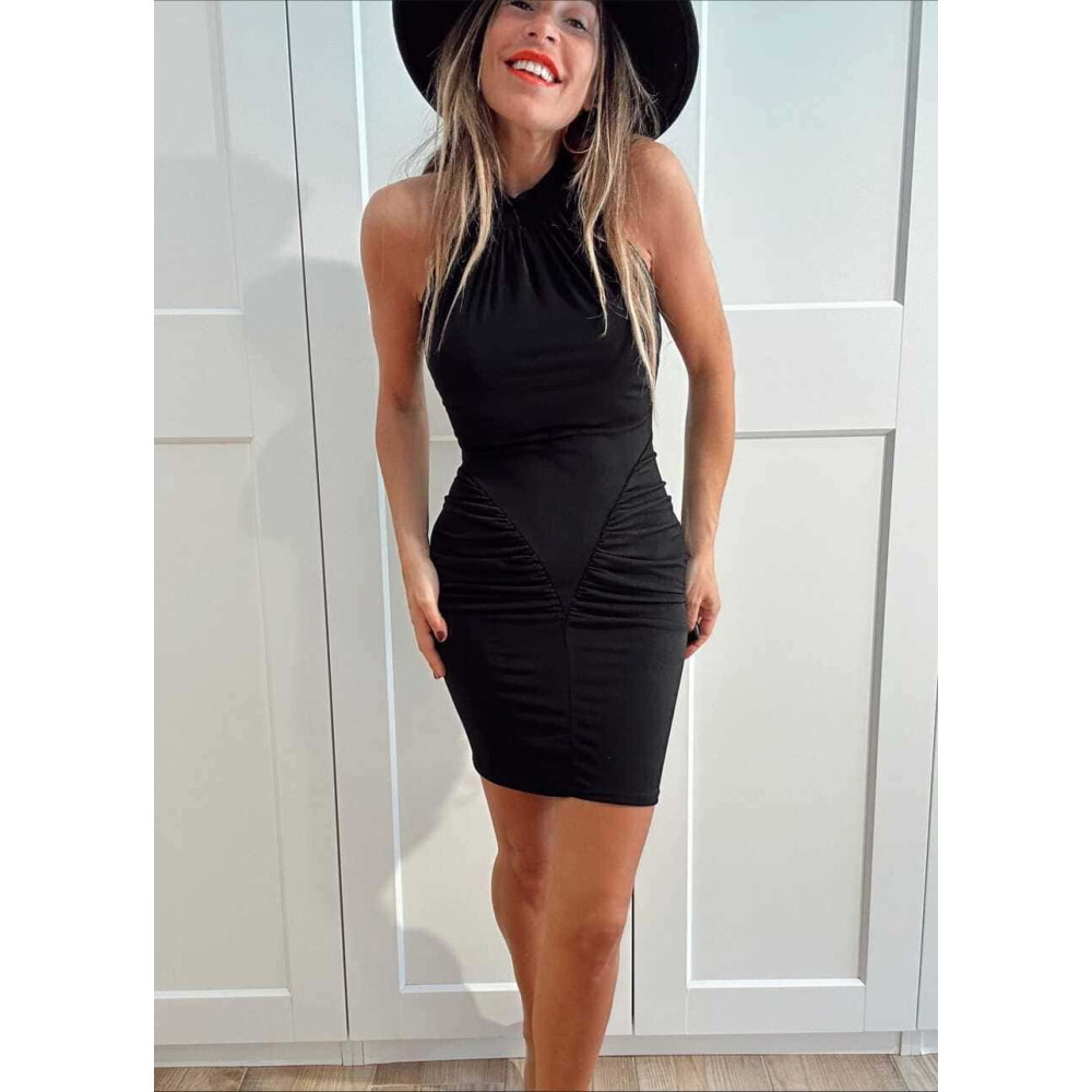 Éstas son aprox. las medidas del Vestido Halter Drapeado VOLTIRA Negro: