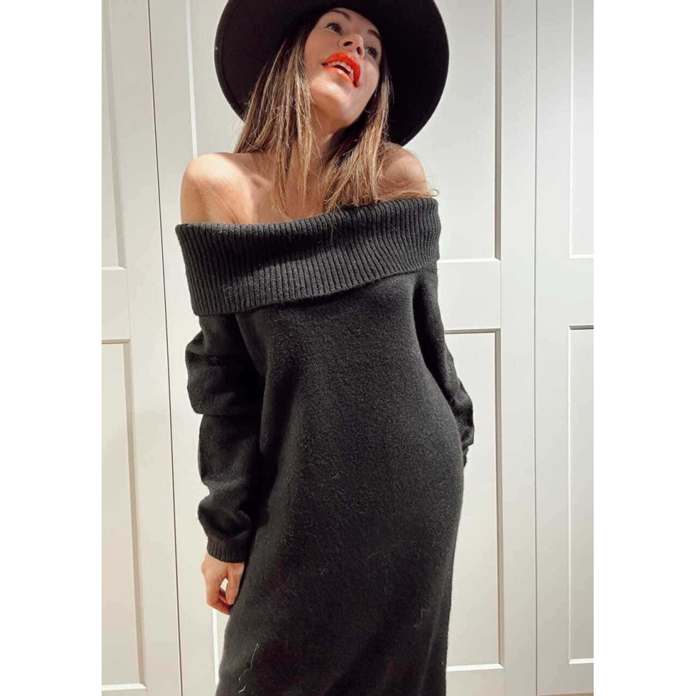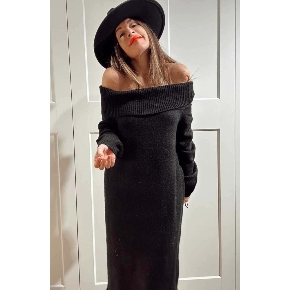 - Vestido largo de punto elástico con hombros descubiertos y escote barco.