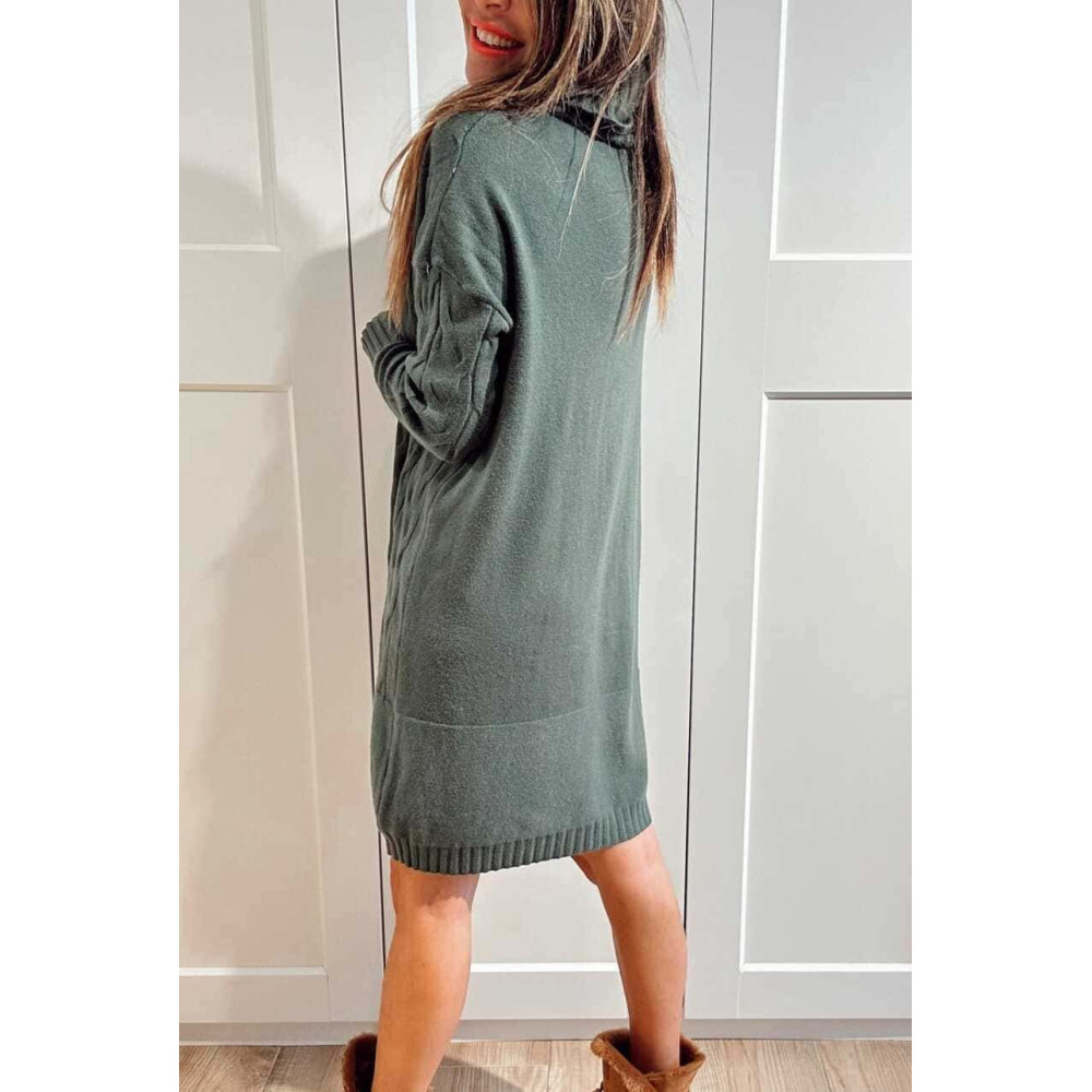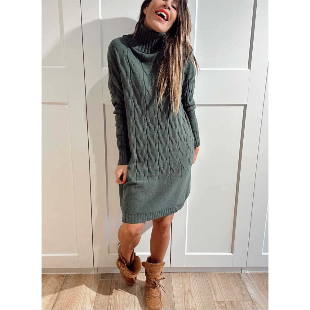 - Vestido corto de punto soft con espigas de ochos trenzados en delantero y mangas.