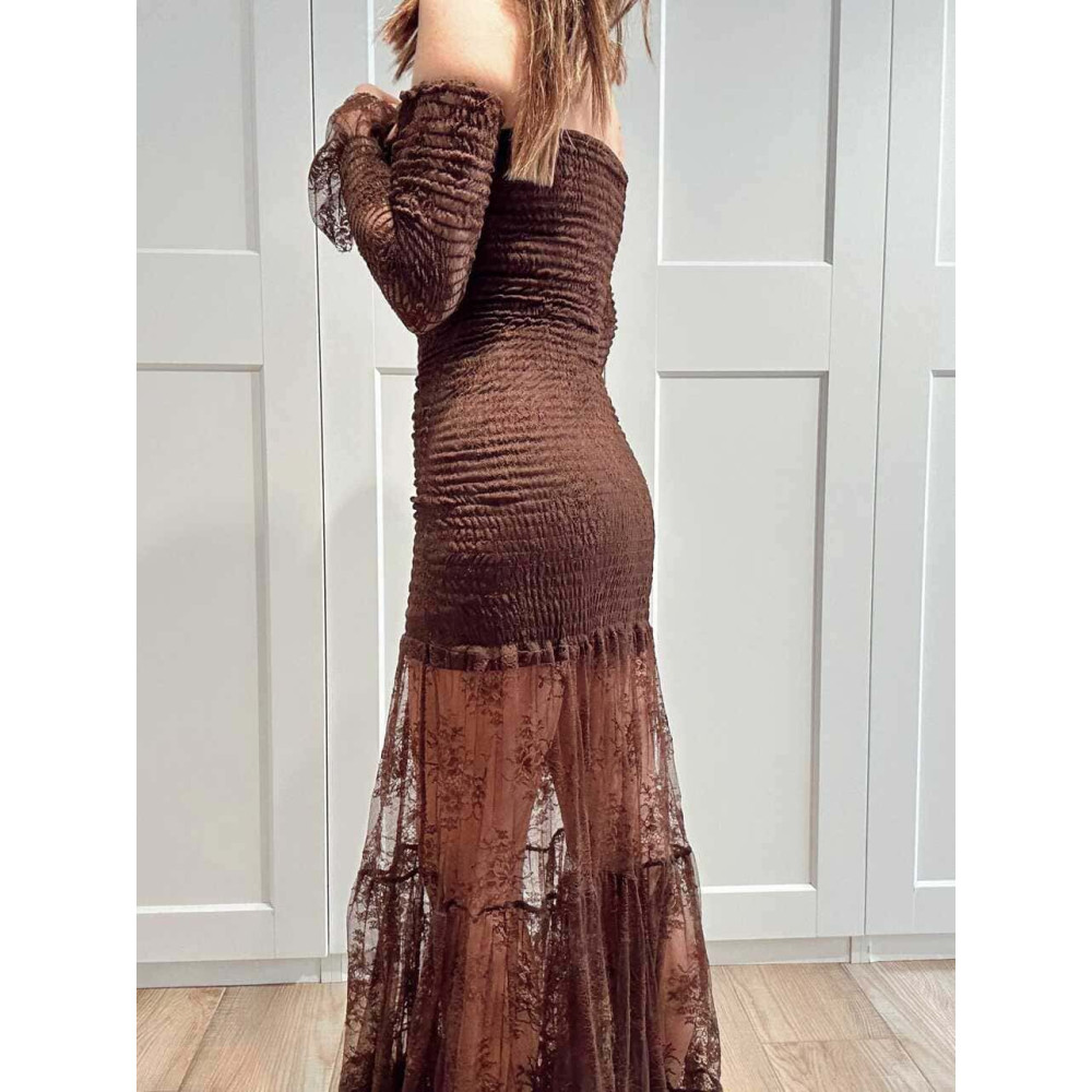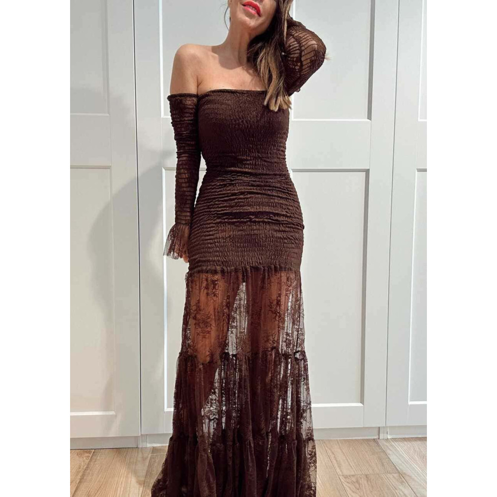 Vestido Encaje Nido de Abeja NYMERA Marrón