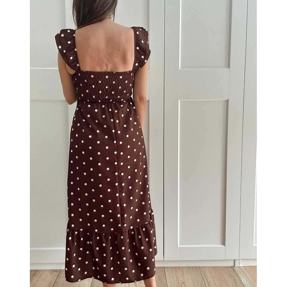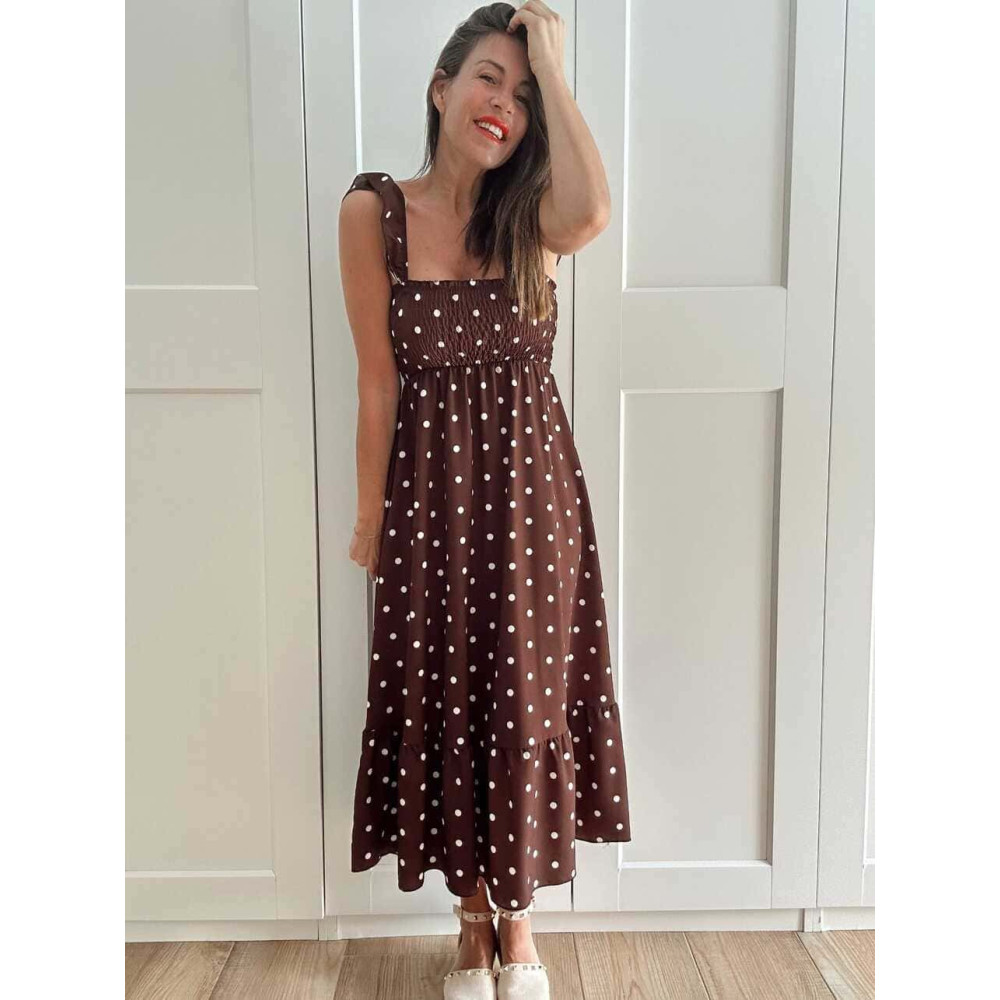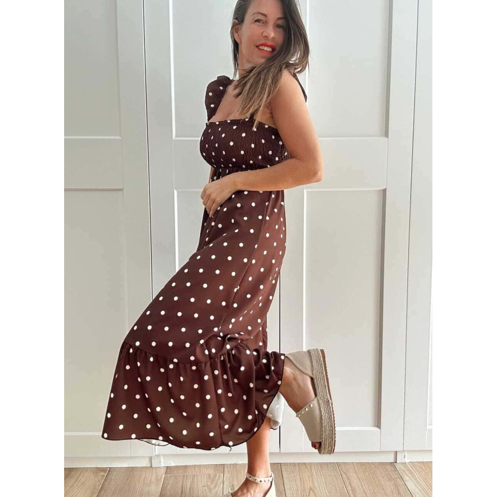 Vestido Lunares Nido de Abeja SALENZIA Marrón