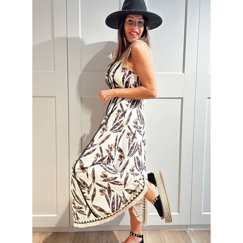 Vestido Lino Estampado Hojas TANISHA HEVE